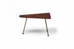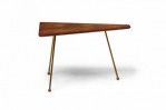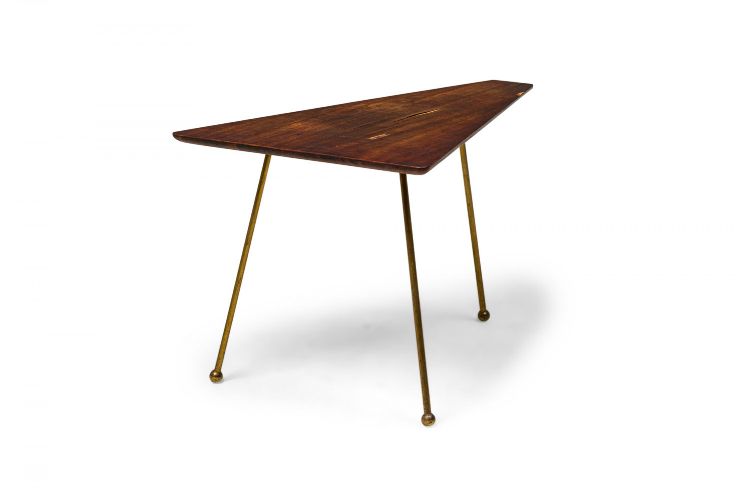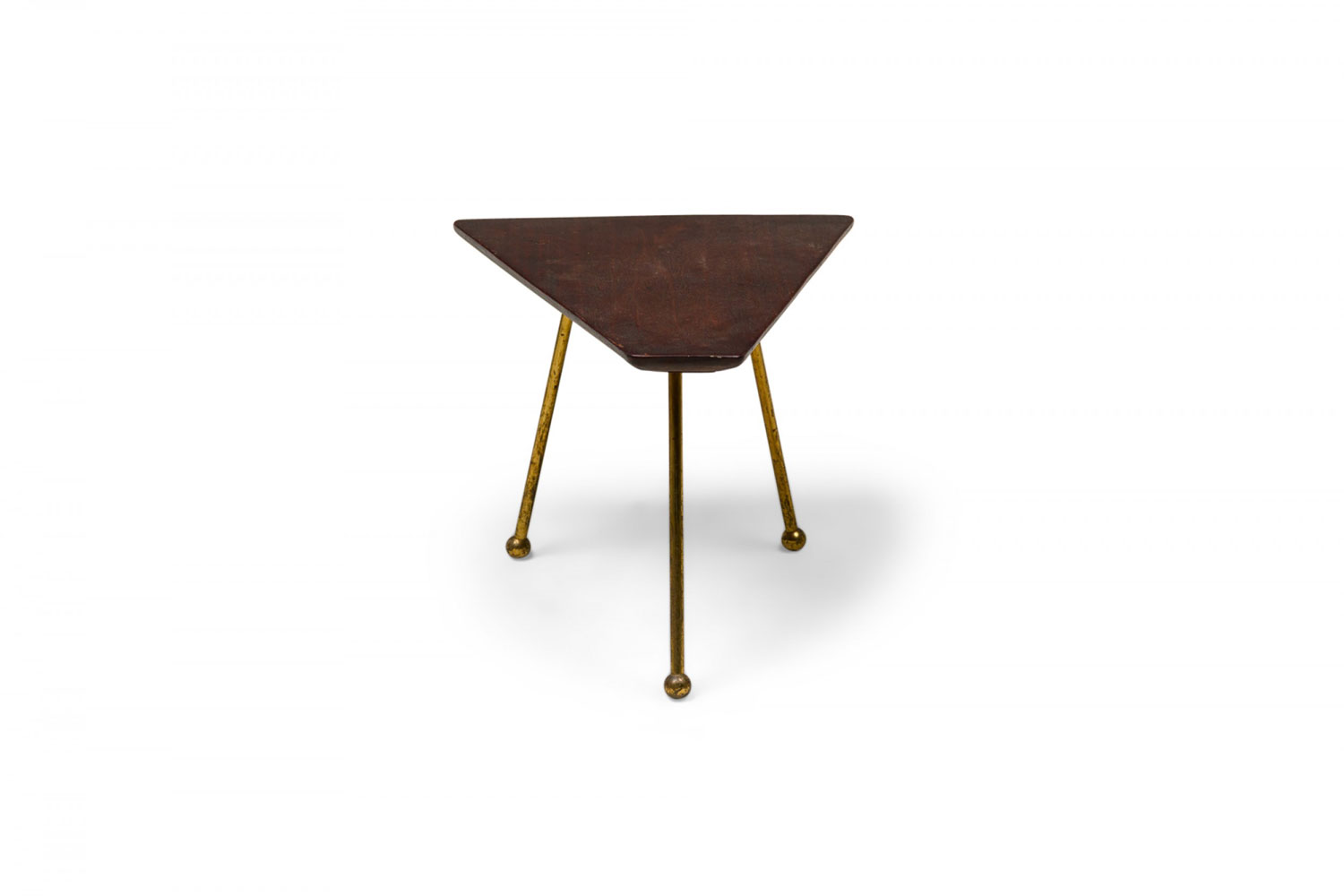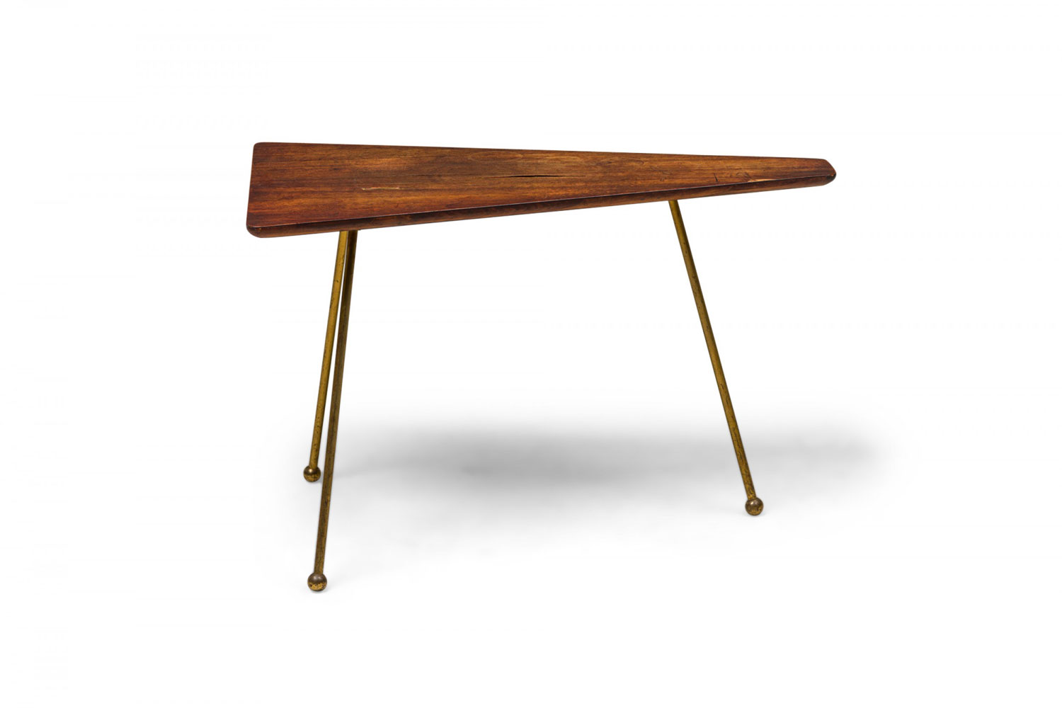 2 Piece Set of Mid-Century American four-sided wood nesting tables in a modern minimalist style standing on three splayed brass legs with ball feet. (MARTIN FREEDMAN) (PRICED AS SET)