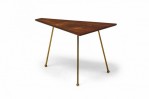 2 Piece Set of Mid-Century American four-sided wood nesting tables in a modern minimalist style standing on three splayed brass legs with ball feet. (MARTIN FREEDMAN) (PRICED AS SET).