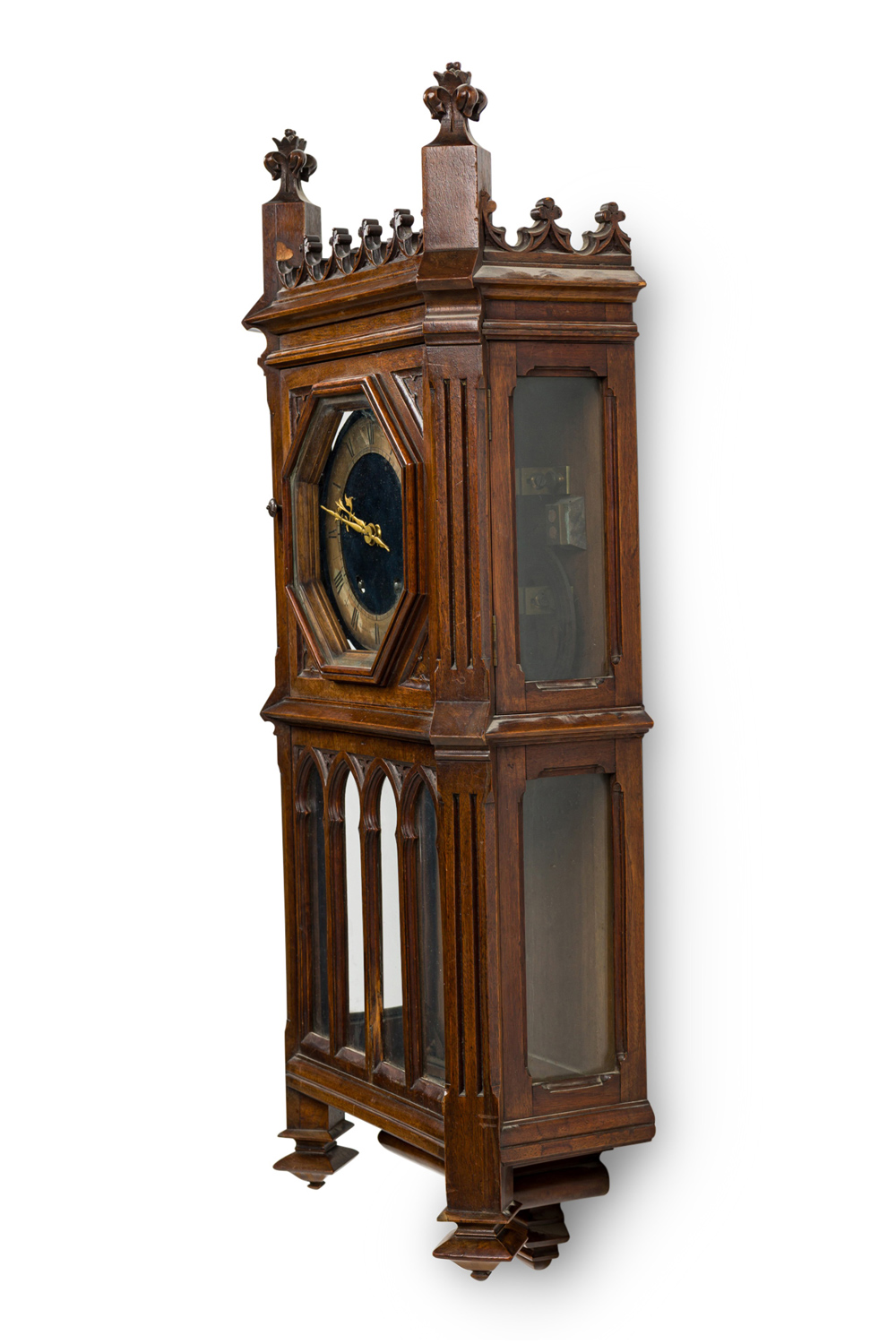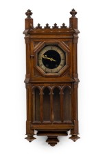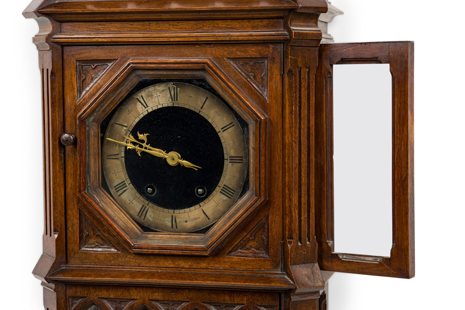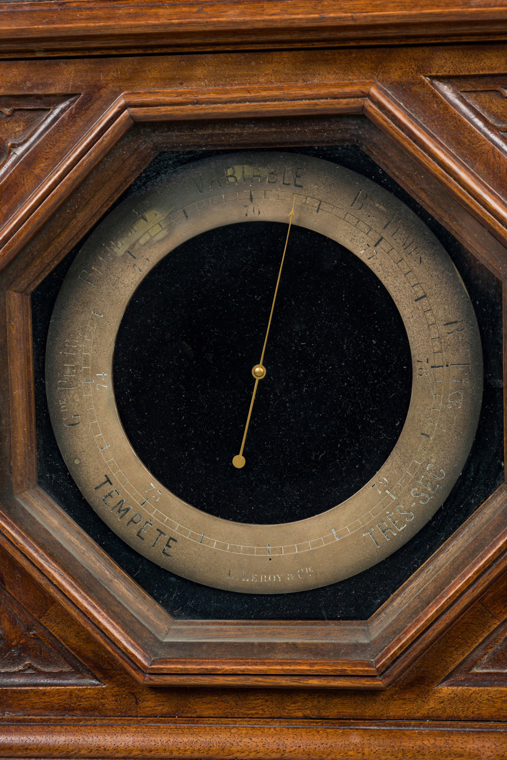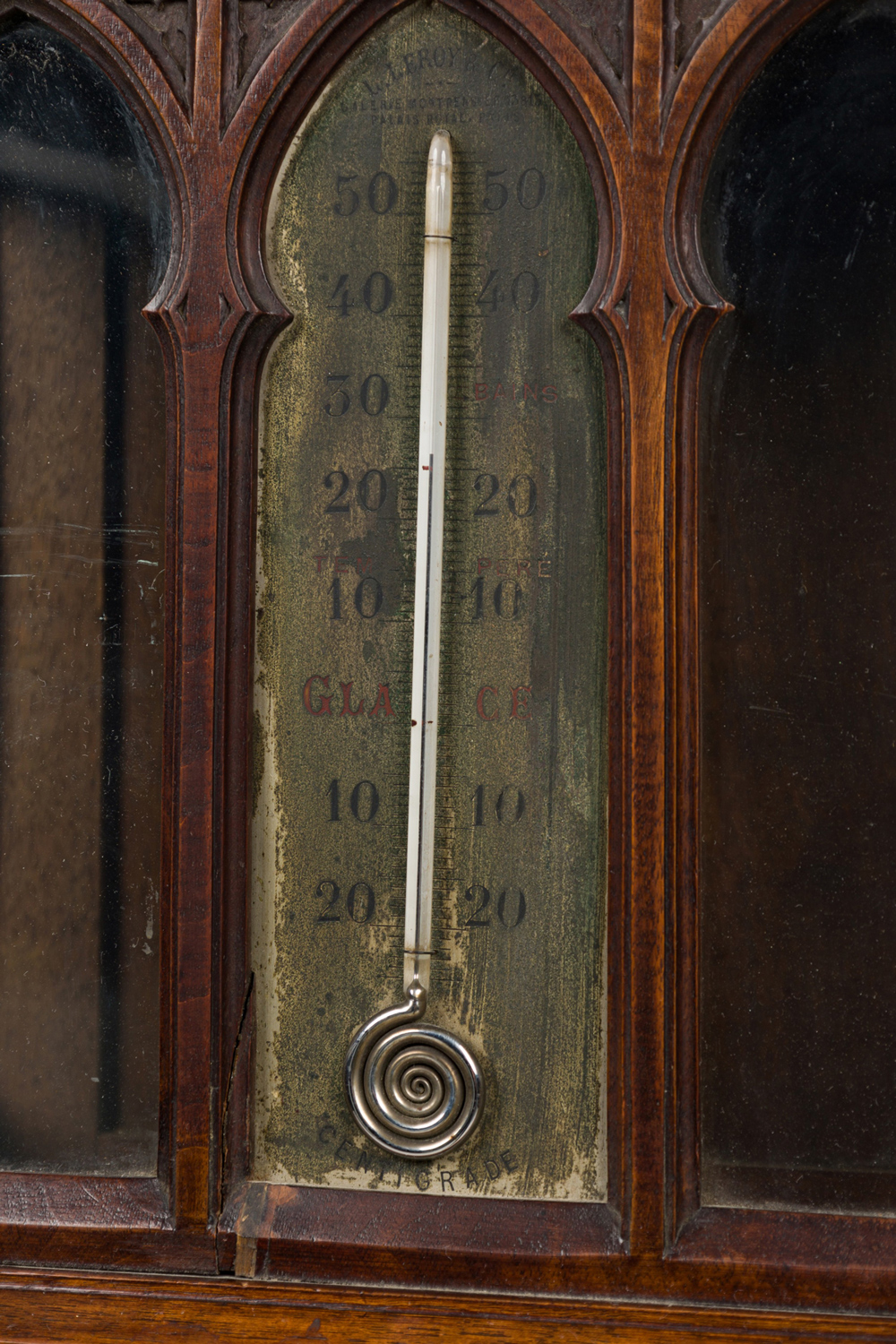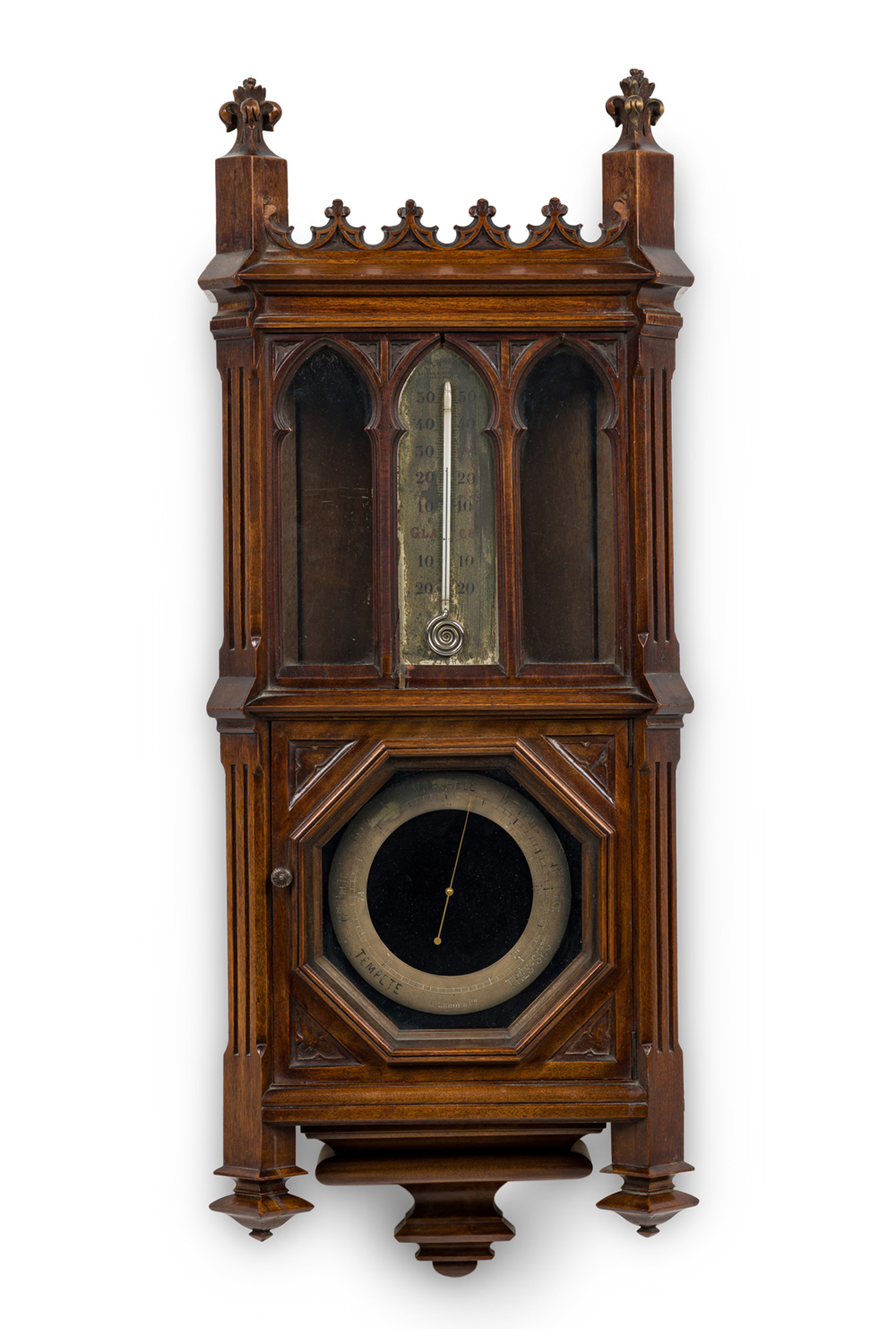 2-Piece French Victorian Gothic Revival (3rd Quarter 19th Century) mahogany barometer/thermometer & wall clock set (Signed L. LEROY & CIE/ 13 & 15 Palais Royal, Paris) (PRICED AS SET) (Not working)