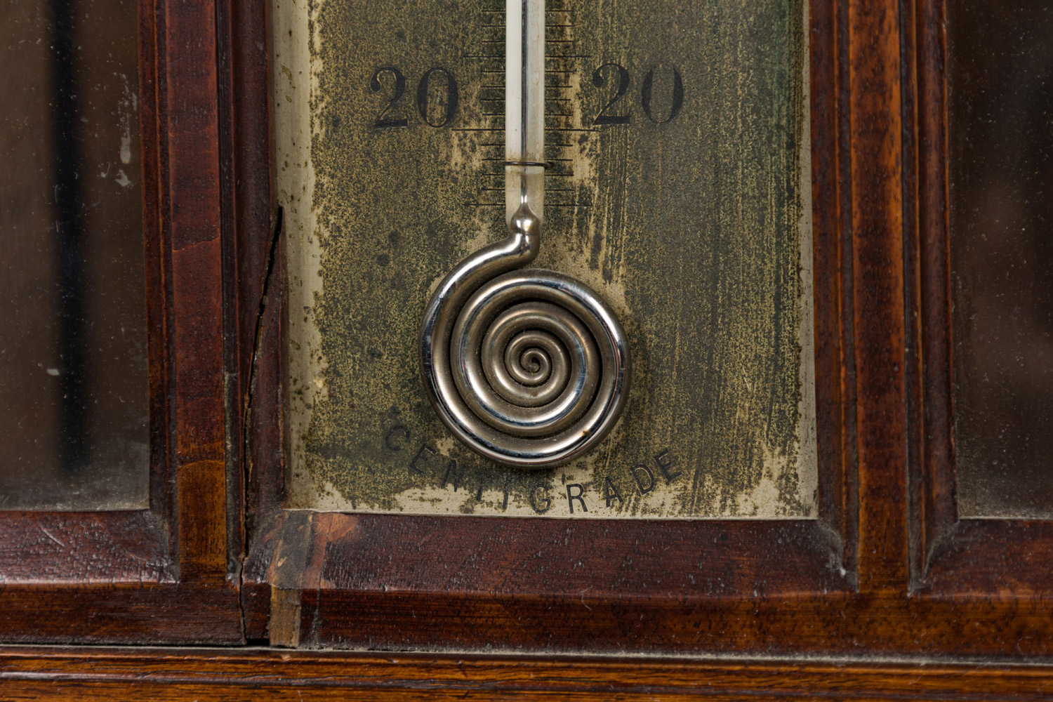 2-Piece French Victorian Gothic Revival (3rd Quarter 19th Century) mahogany barometer/thermometer & wall clock set (Signed L. LEROY & CIE/ 13 & 15 Palais Royal, Paris) (PRICED AS SET) (Not working).