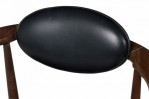 3 Mid-Century Danish Modern armchairs featuring horseshoe arms unified with the backrest as one piece, oval backrest and shaped seat upholstered in black leather, standing on 4 tapered cylindrical legs extending to the arms. (att: HANS WEGNER)(PRICED EACH)