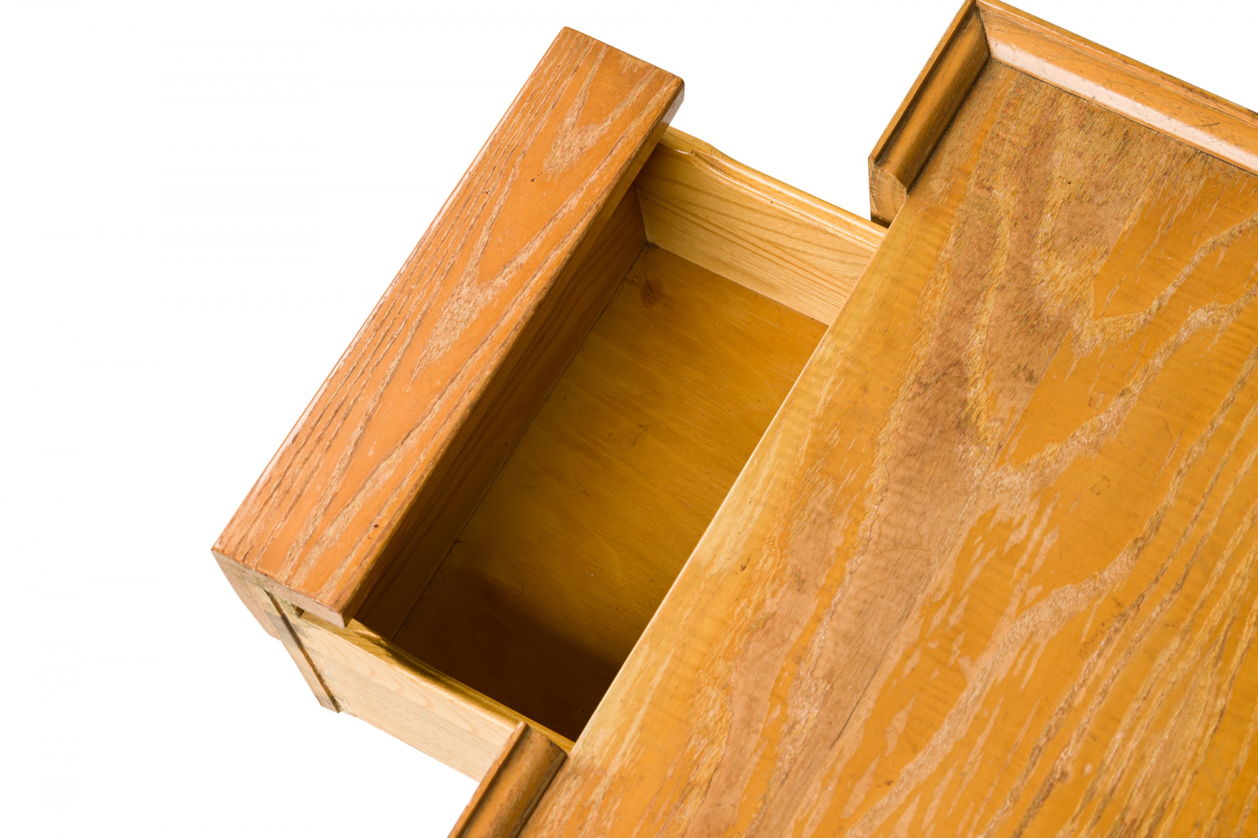 Style: Mid-Century Materials & Techniques: Cerused, wood Category: Tables, Bedroom Good; Wear consistent with age and use