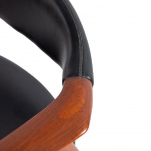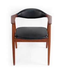 SET of 4 Mid-Century Danish teak armchairs with a black vinyl upholstered narrow oval back panel and seat (designed by ERIK KIRKEGAARD for GLOSTRUP MOBELFABRIK) (PRICED AS SET)
