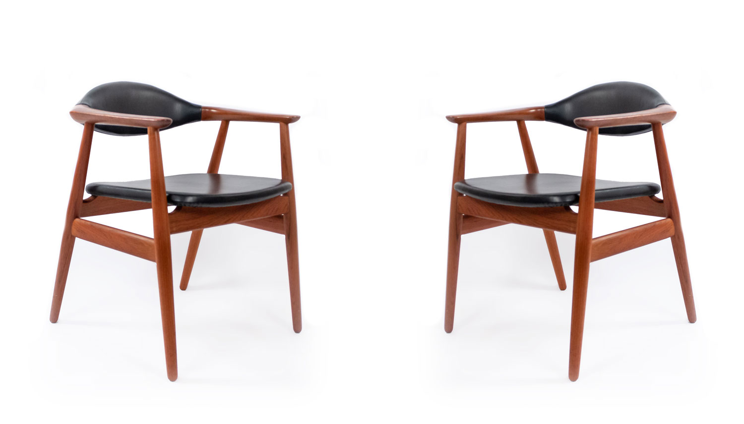 Set of Black Vinyl and Teak Erik Kirkegaard Midcentury Arm Chairs