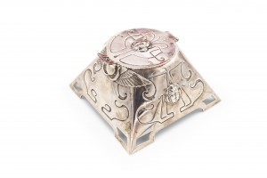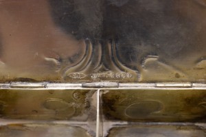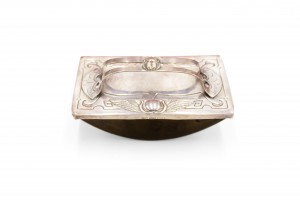 Style: English Materials & Techniques: Silver, silver Category: Office/Library, Accessories/Décor/Bric-a-Brac Condition: Inkwell missing glass with broken hinge