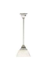 6 Contemporary holophane square textured glass hanging lights with a chrome extension and fixture (PRICED EACH ).