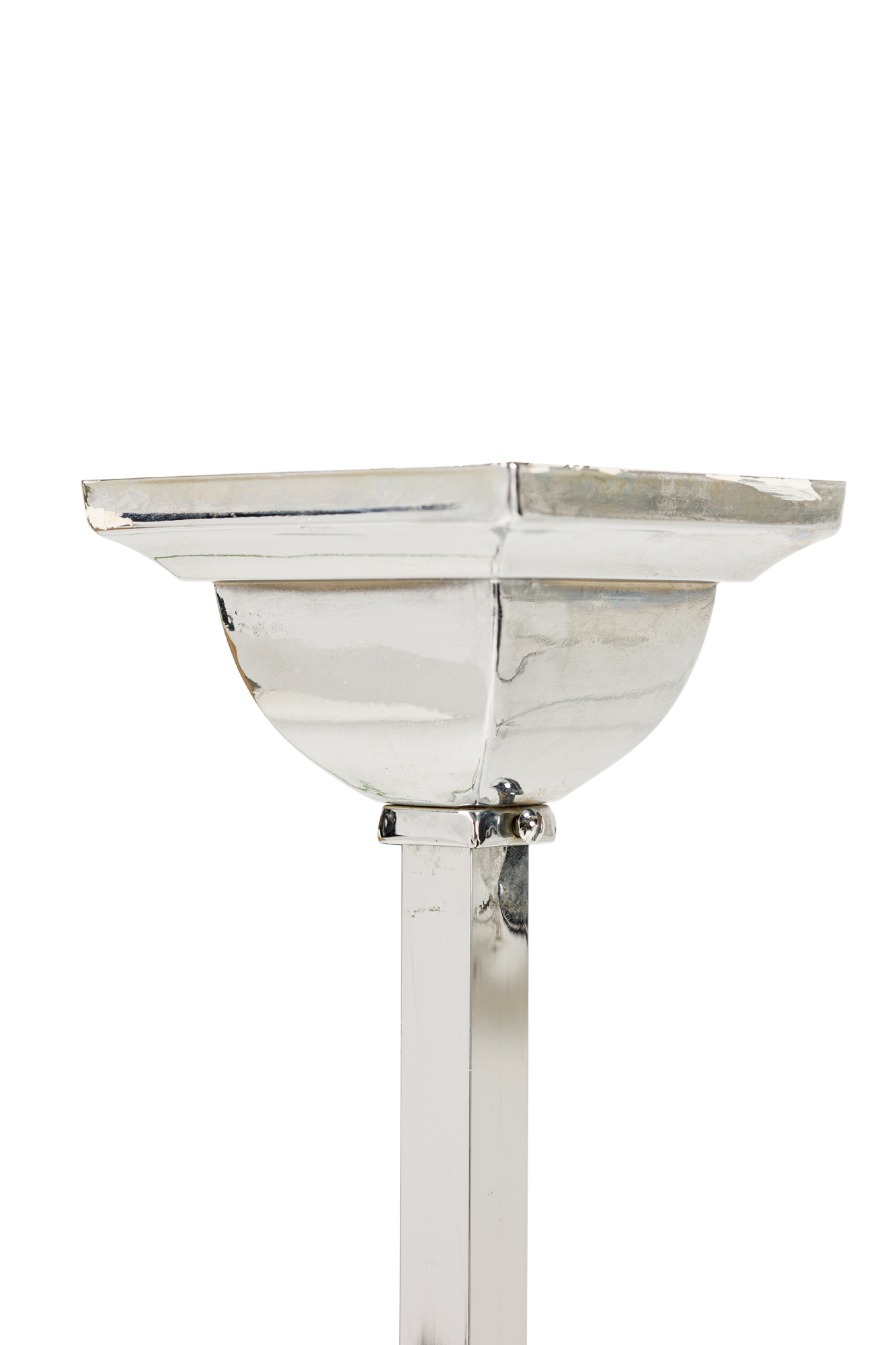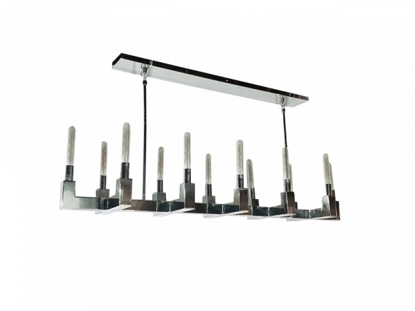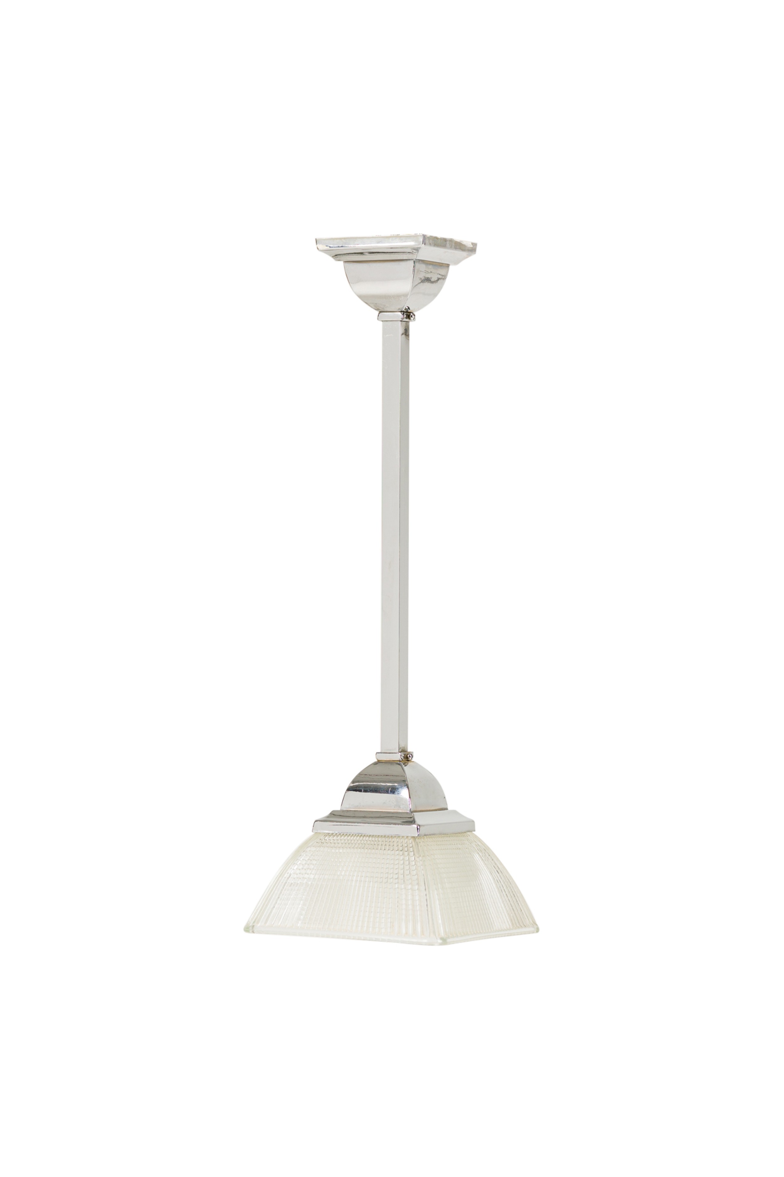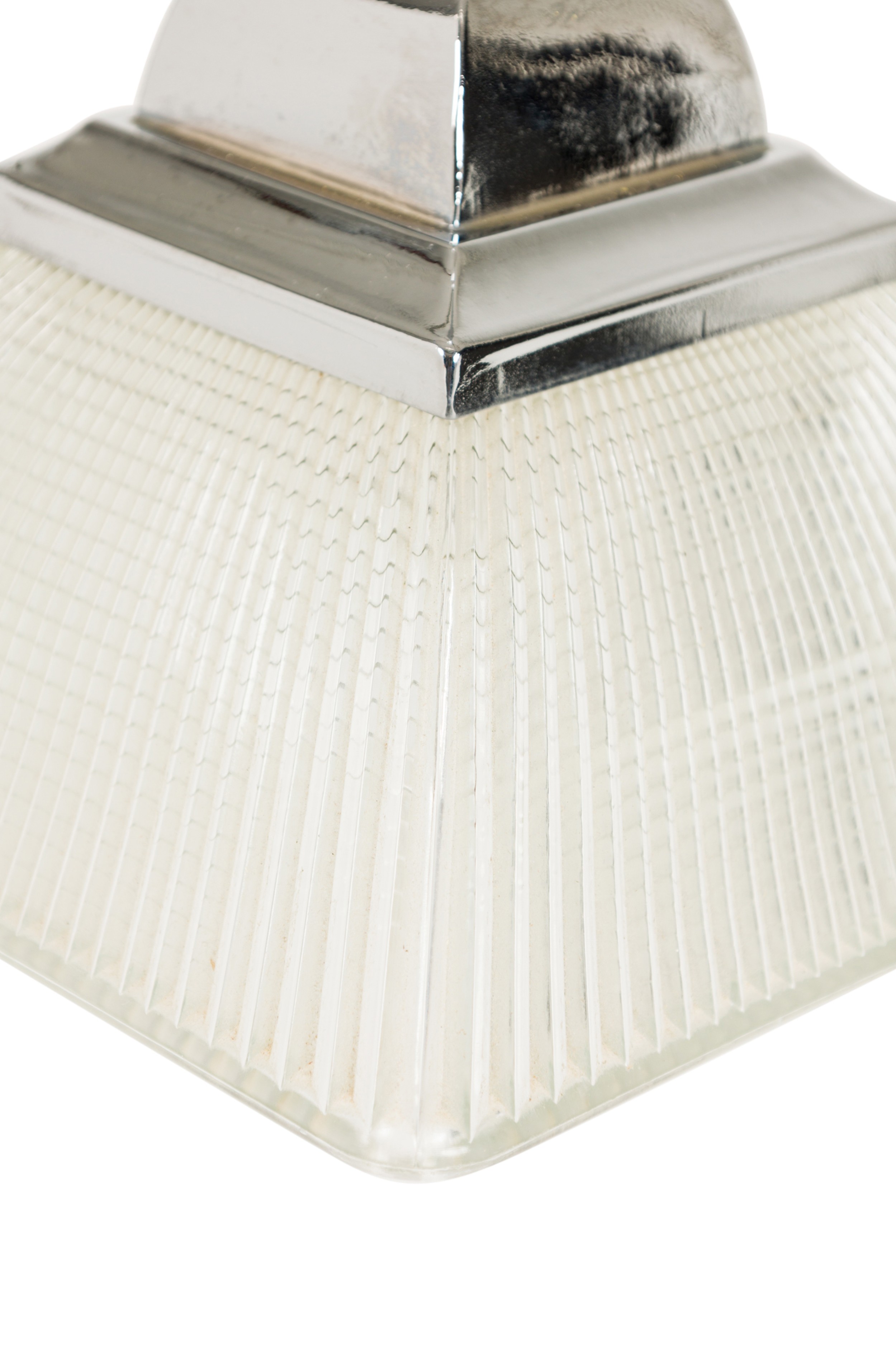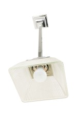 6 Contemporary holophane square textured glass hanging lights with a chrome extension and fixture (PRICED EACH )