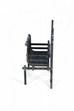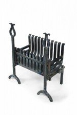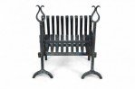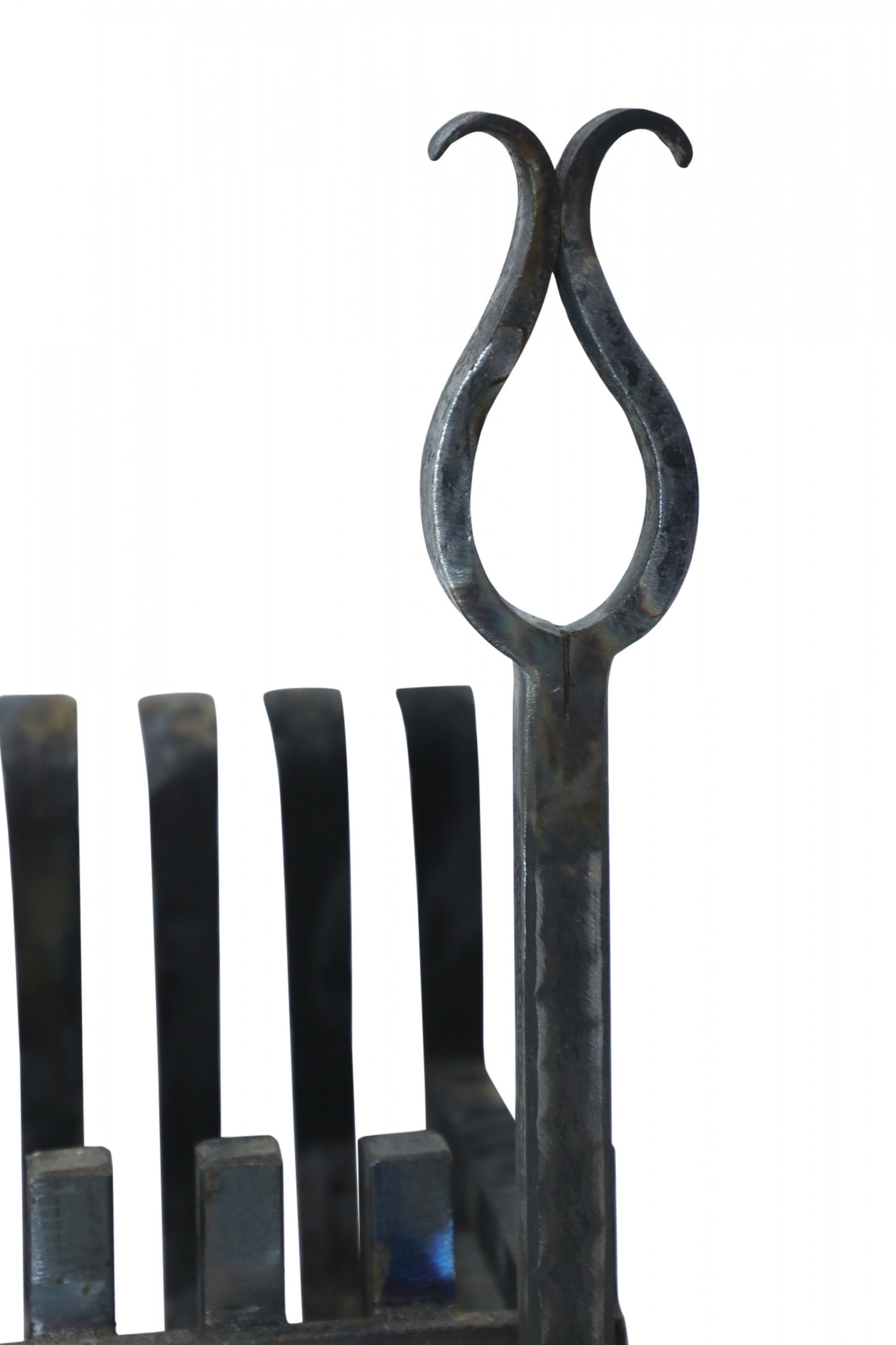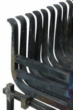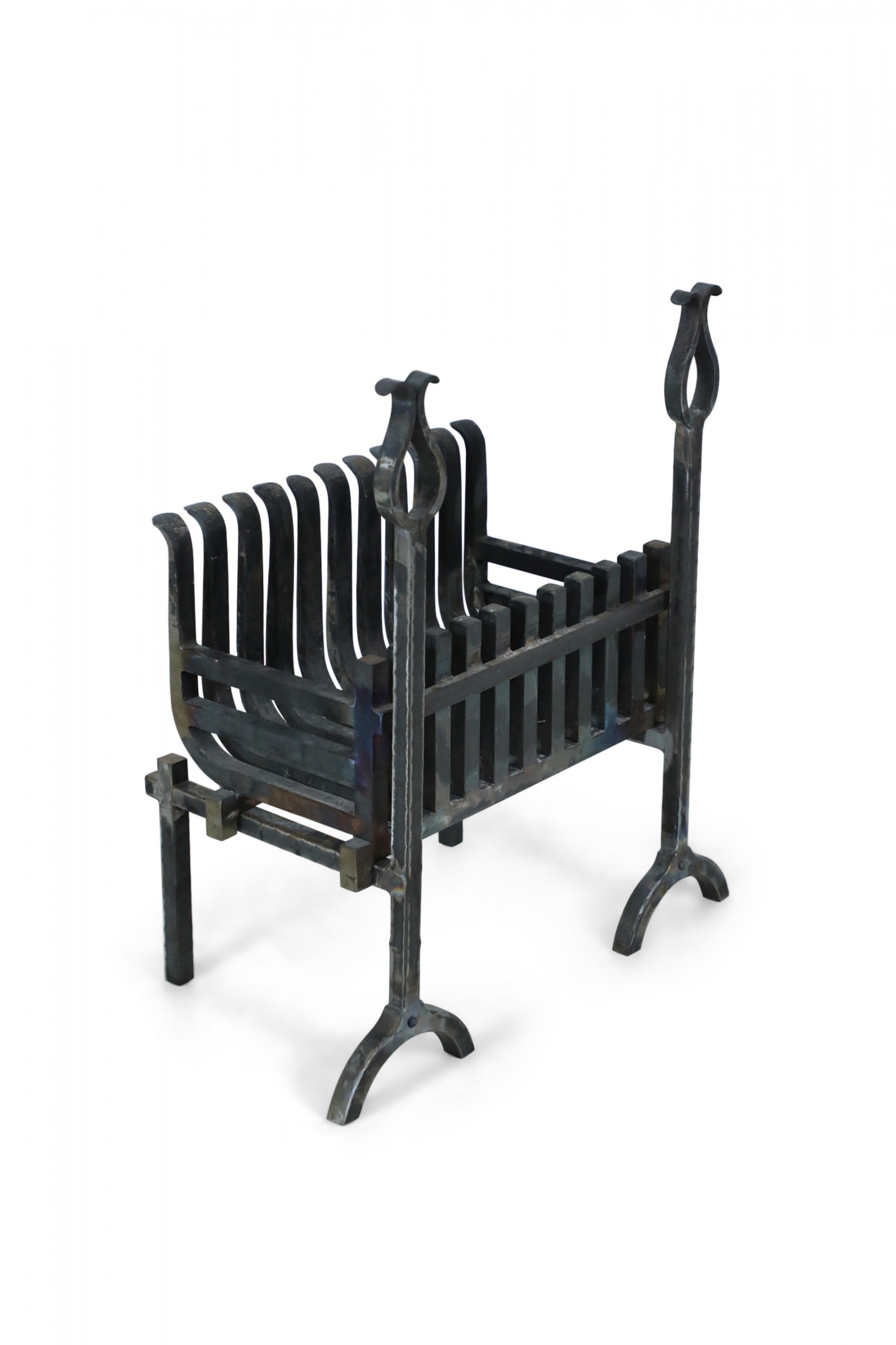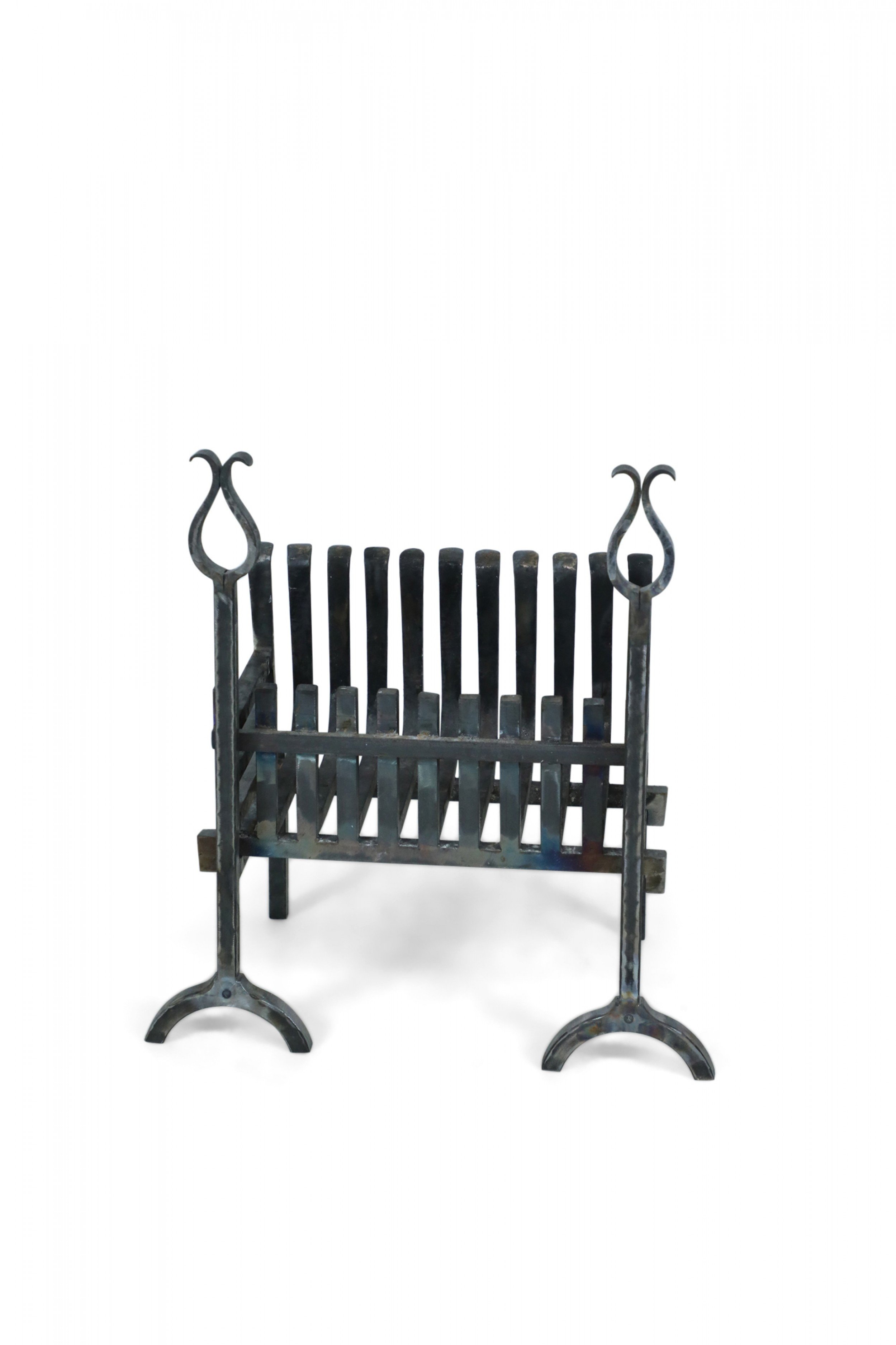 American Art Deco 3-piece iron fire grate comprised of a curved iron slat grate resting on two independent andirons..