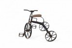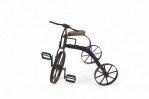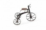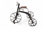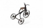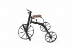 American Country-style rustic iron miniature tricycle sculpture with pine wood seat and rotating wheels and pedals.