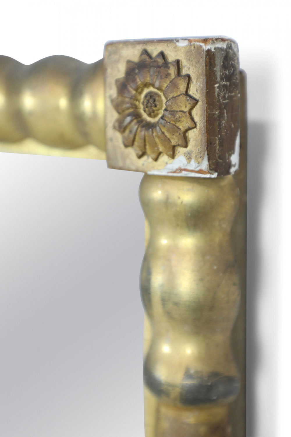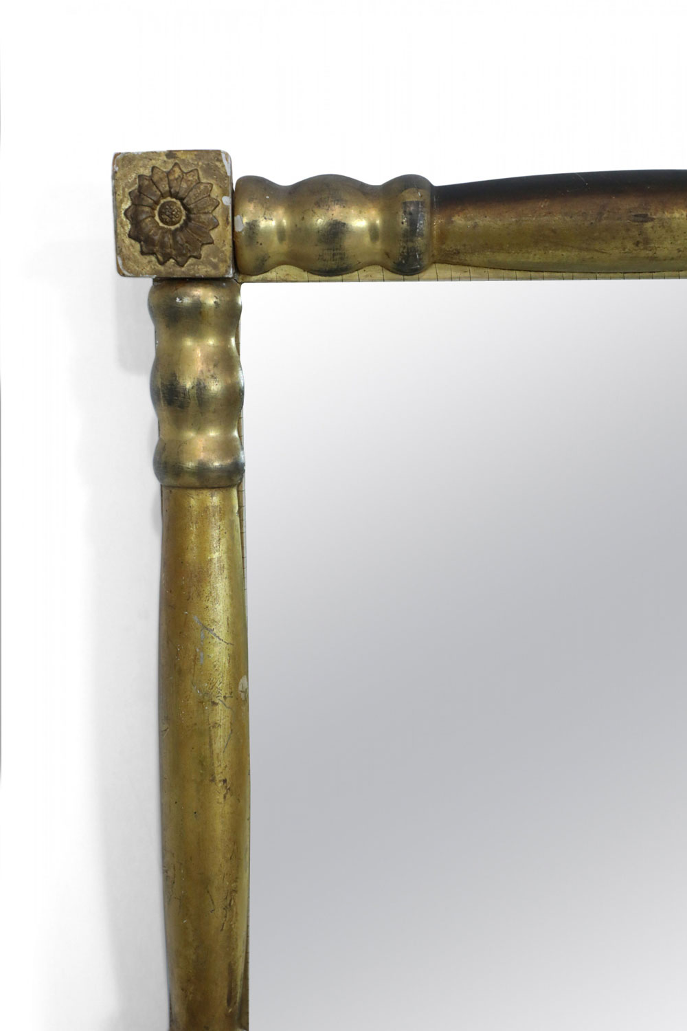 American Empire (19th Century) 3-section overmantel wall mirror with column form giltwood frame with corner rosettes..