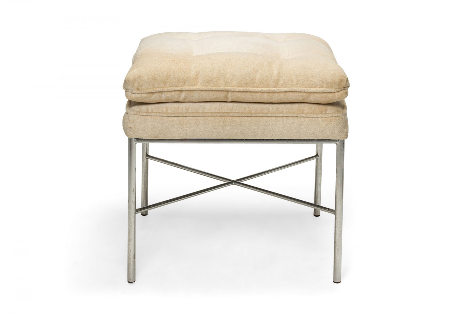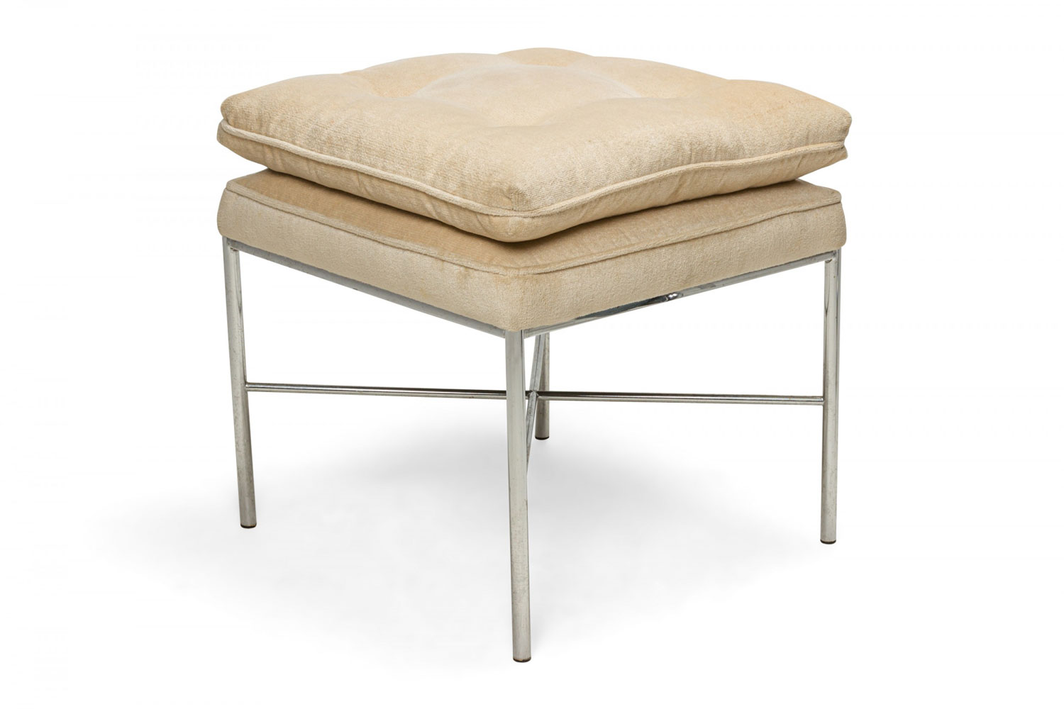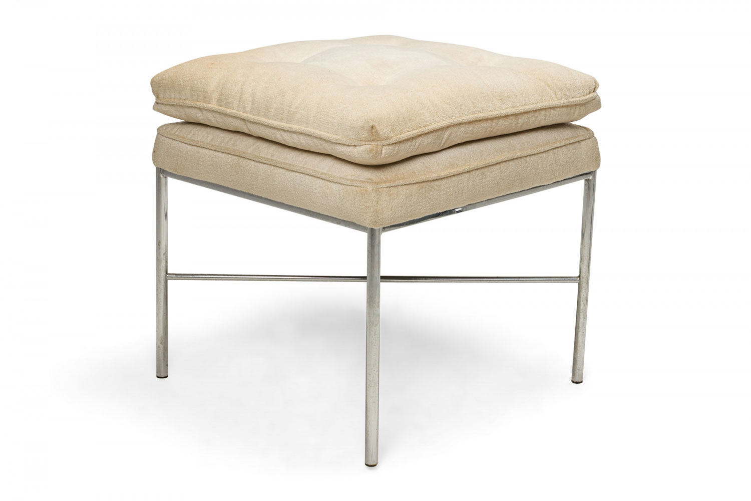 American Mid-Century Chrome Tube and Beige Upholstered Square Bench (manner of DIA)