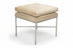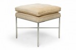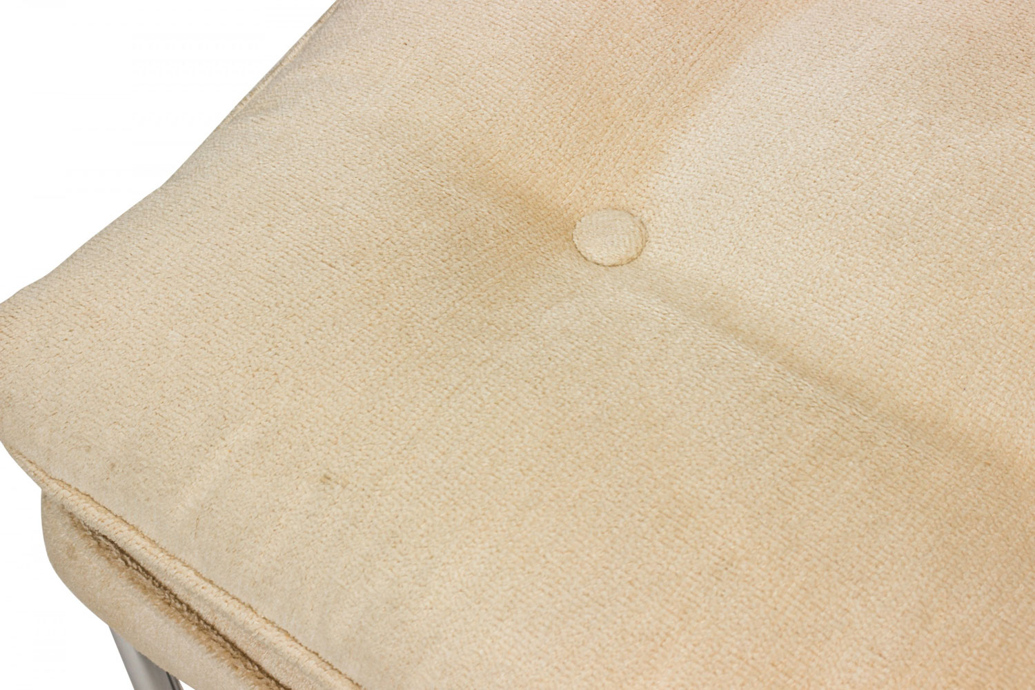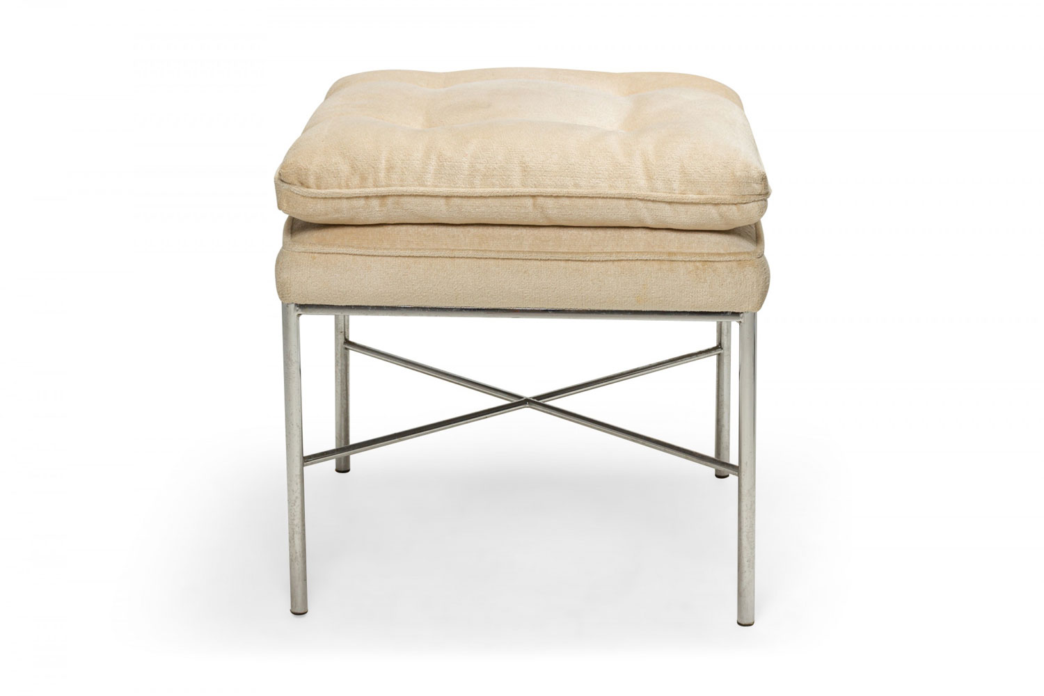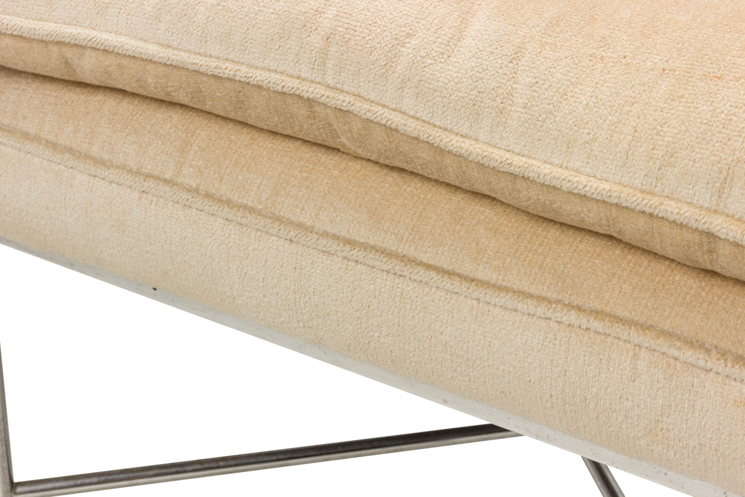 American Mid-Century Chrome Tube and Beige Upholstered Square Bench (manner of DIA)