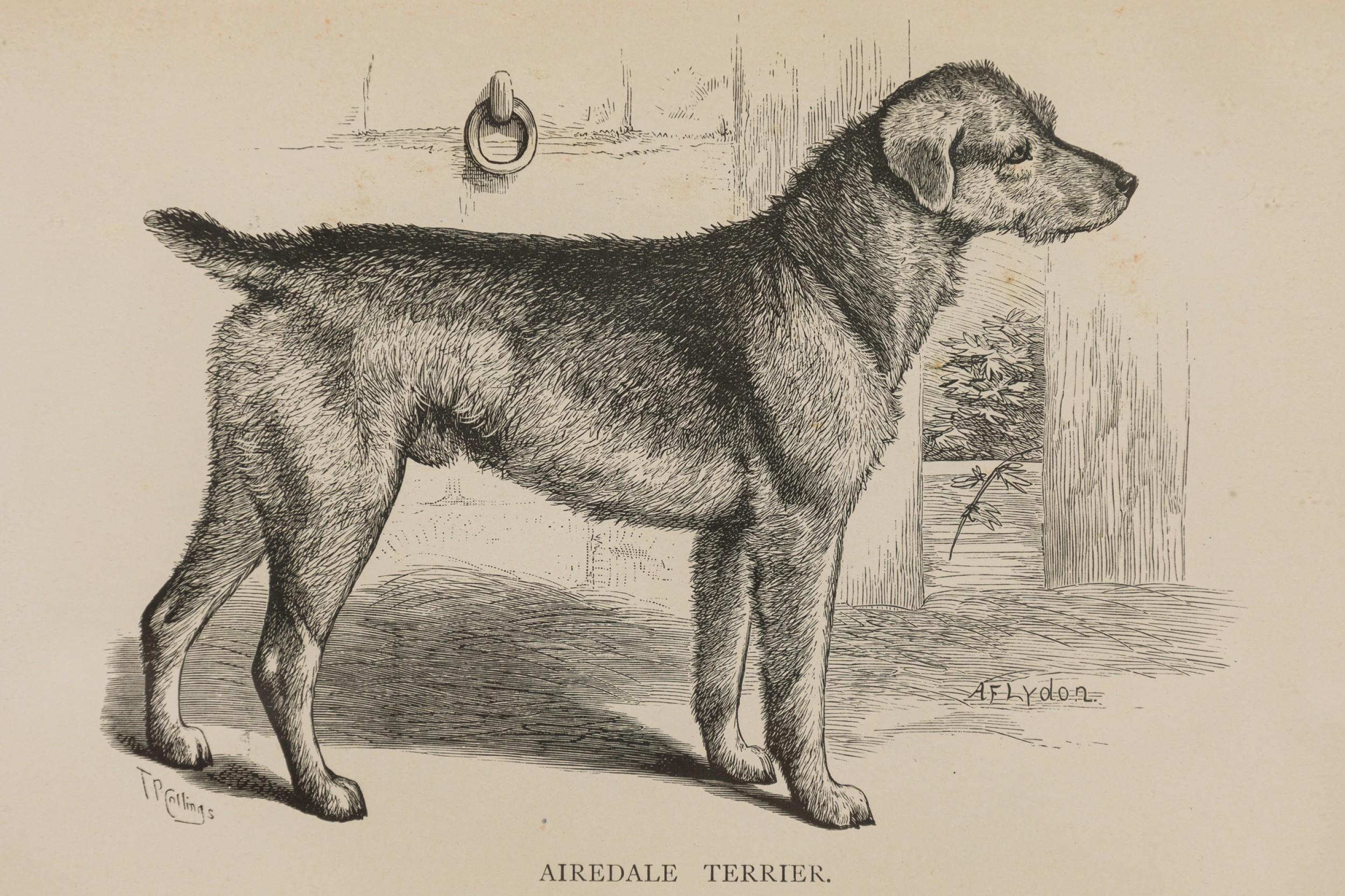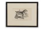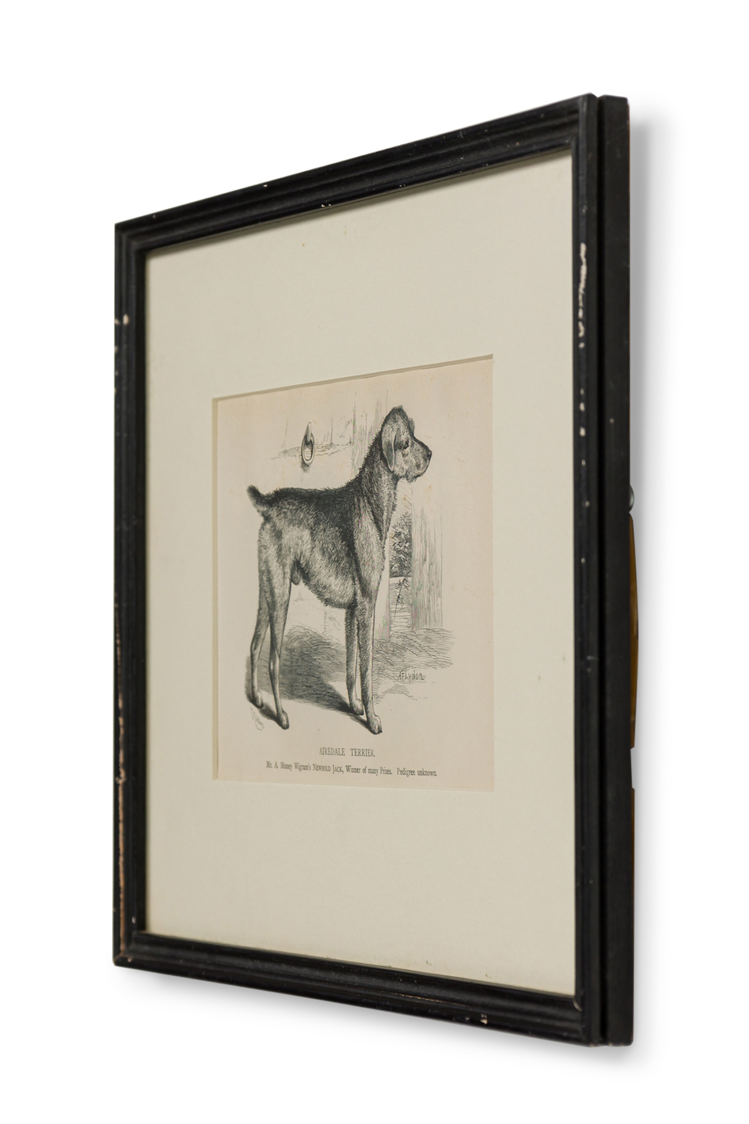 American Mid-Century print of an Airdale terrier in a black wooden frame (Signed: Aflydon)
