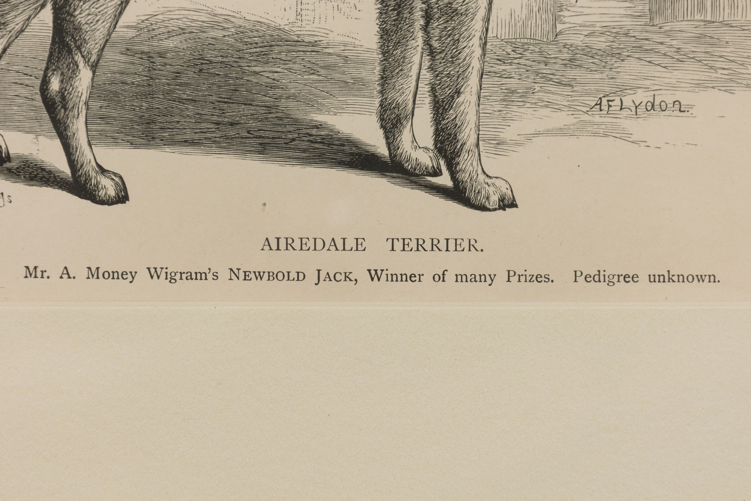 American Mid-Century print of an Airdale terrier in a black wooden frame (Signed: Aflydon).