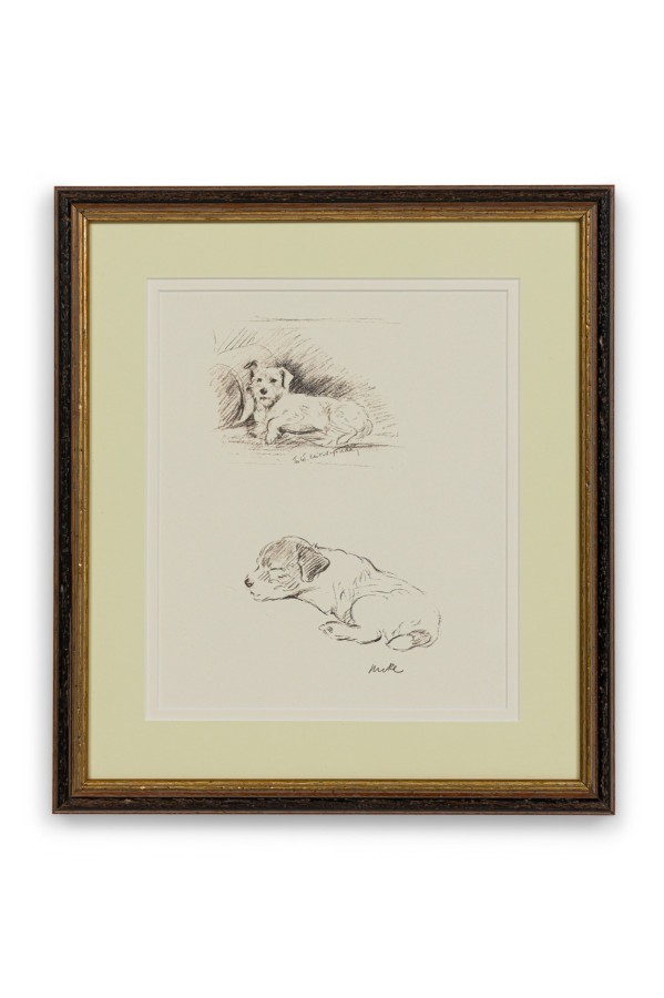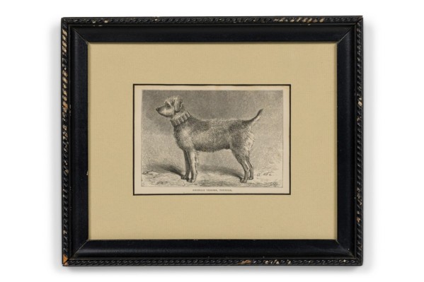 American Mid-Century print of an Airdale terrier in a wooden gold frame