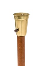 American Mid-Century Milk Glass and Wooden Stem Floor Lamp