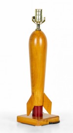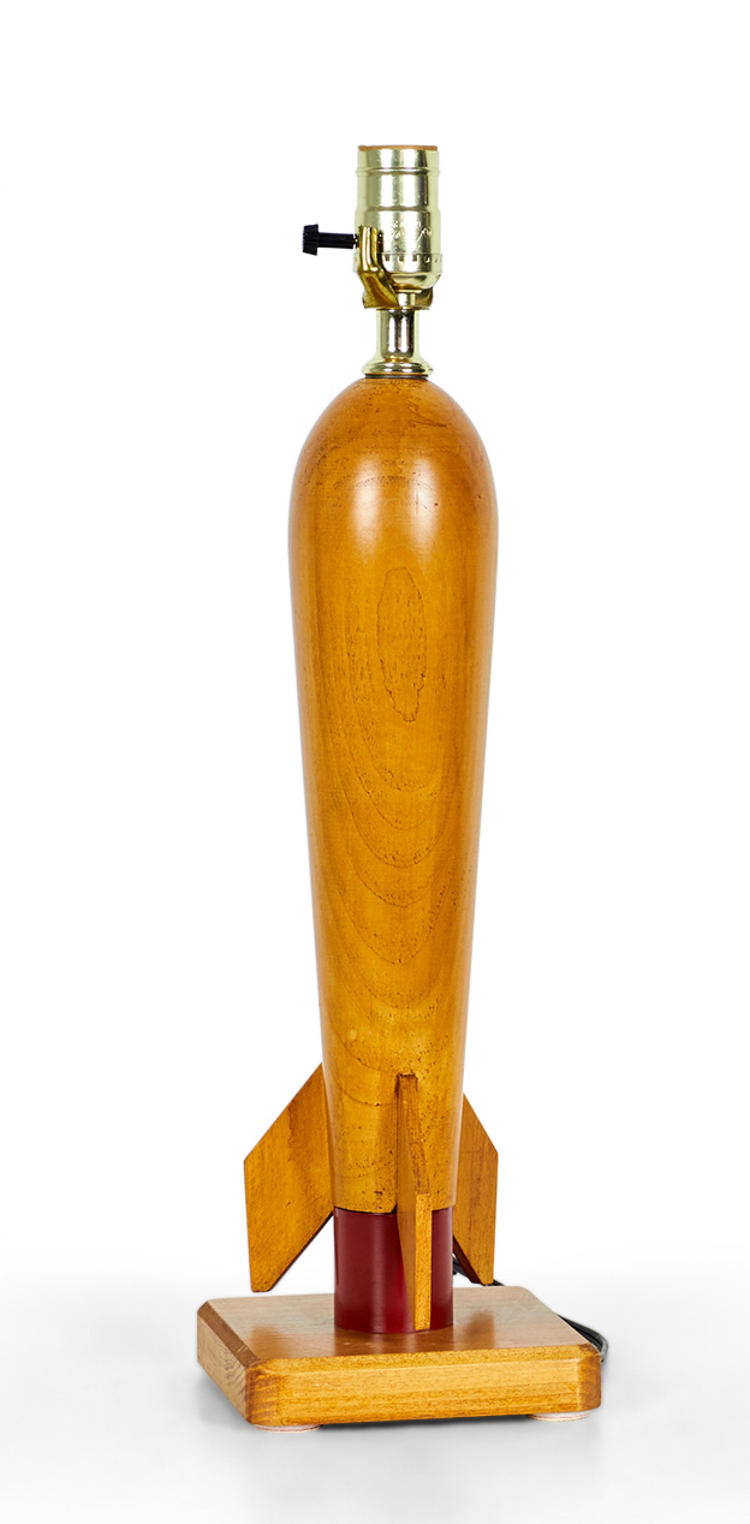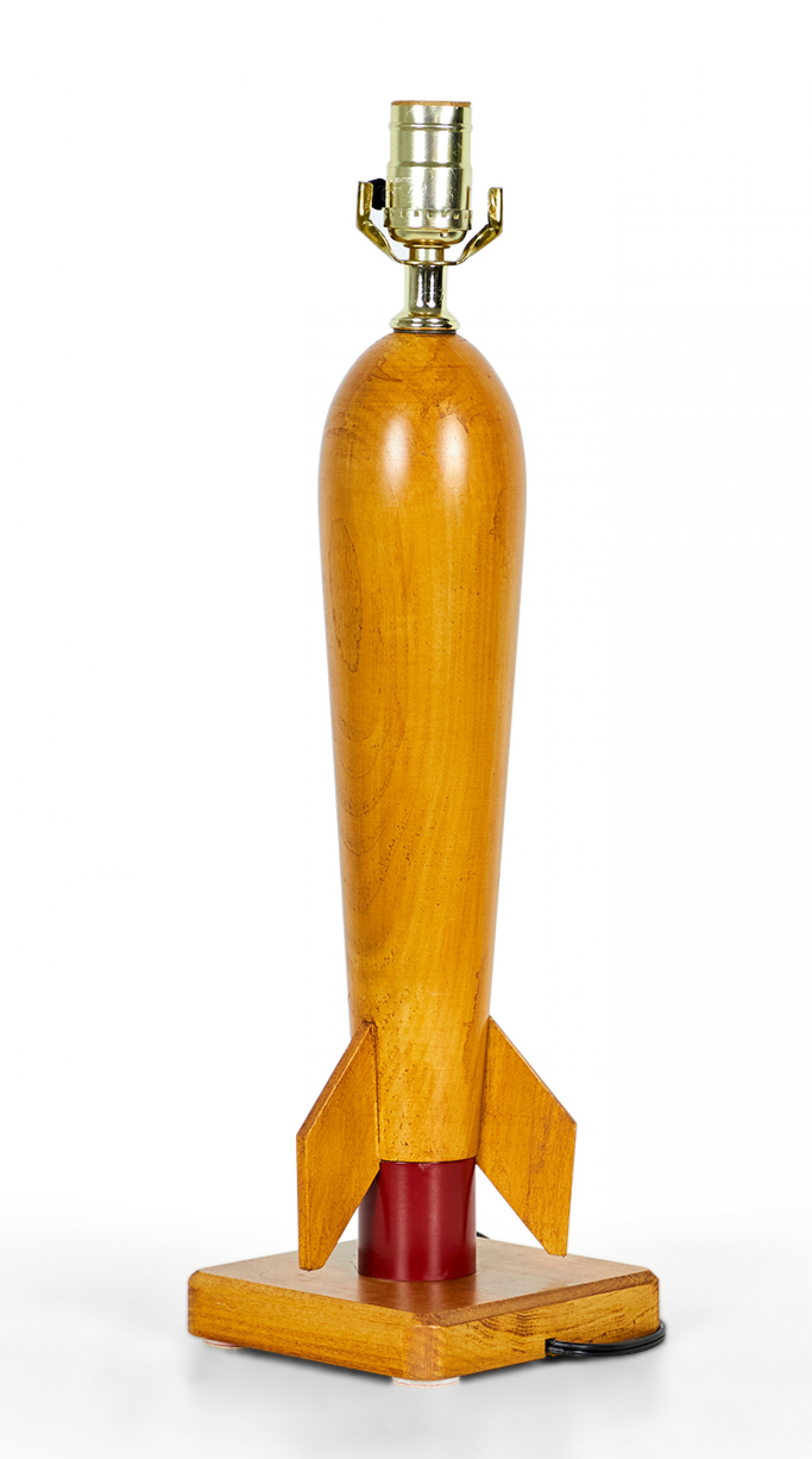 American Mid-Century Polished Maple Rocket-Shaped Table Lamp