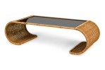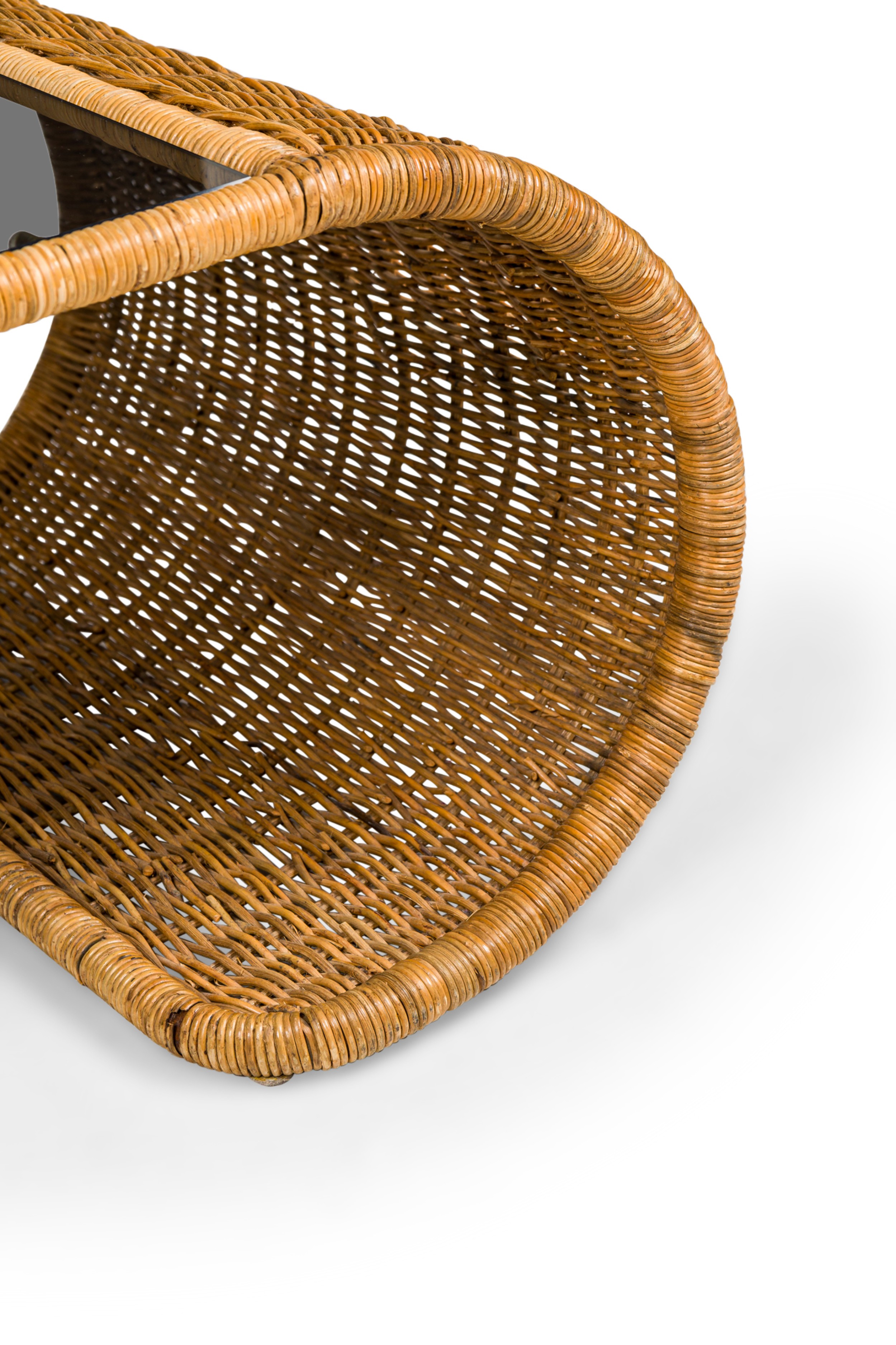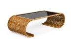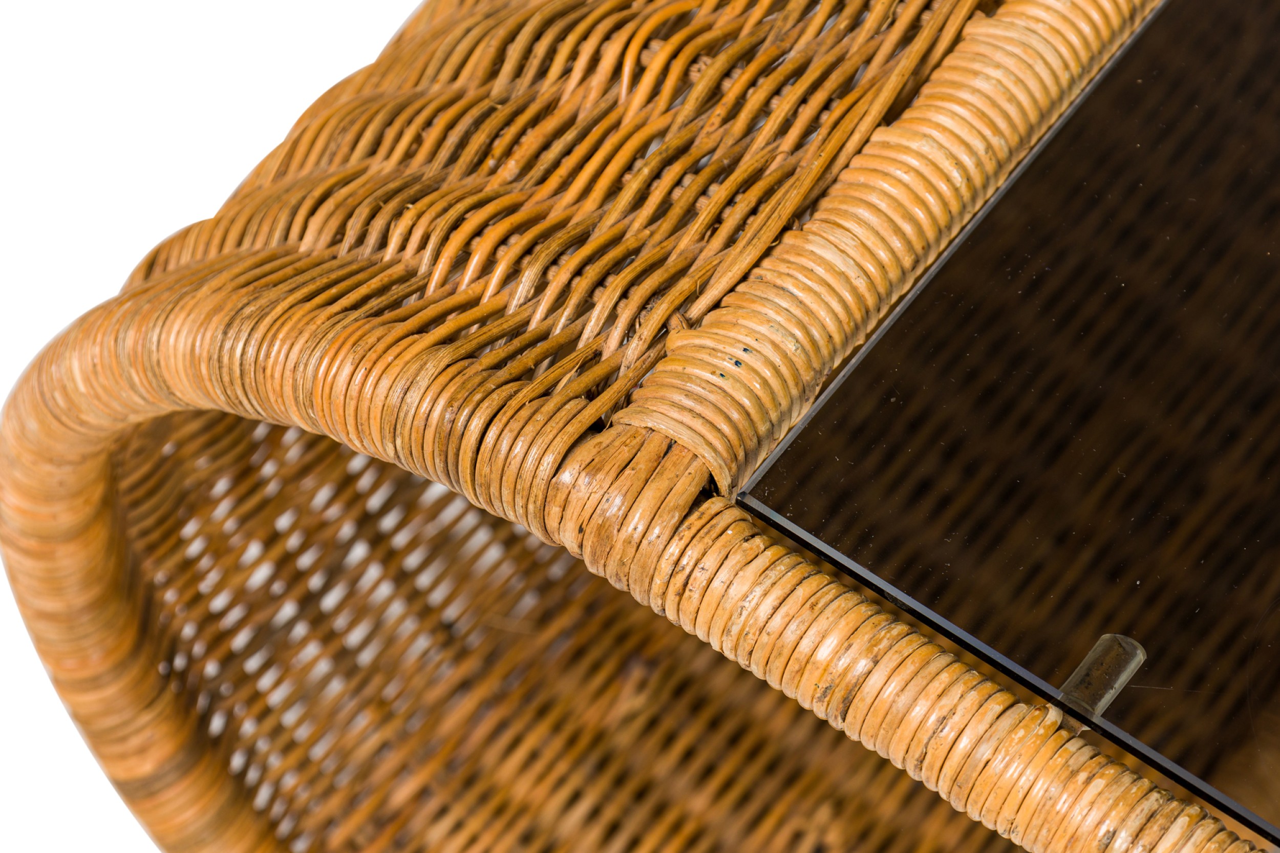 American Mid Century Smoked Glass and Wicker Waterfall Edged Cocktail Table