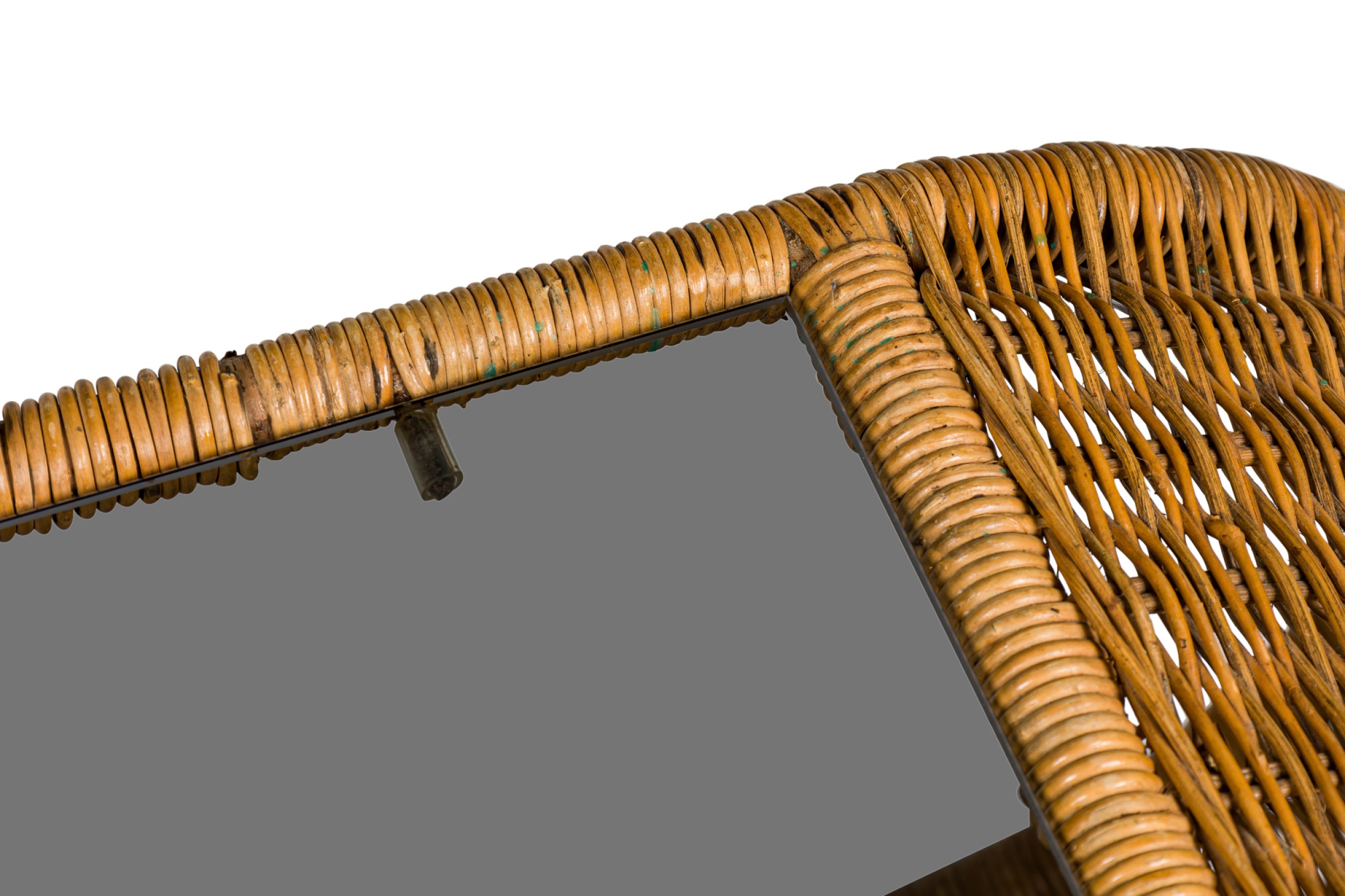 Style: Mid-Century Materials & Techniques: Glass, wicker Category: Tables