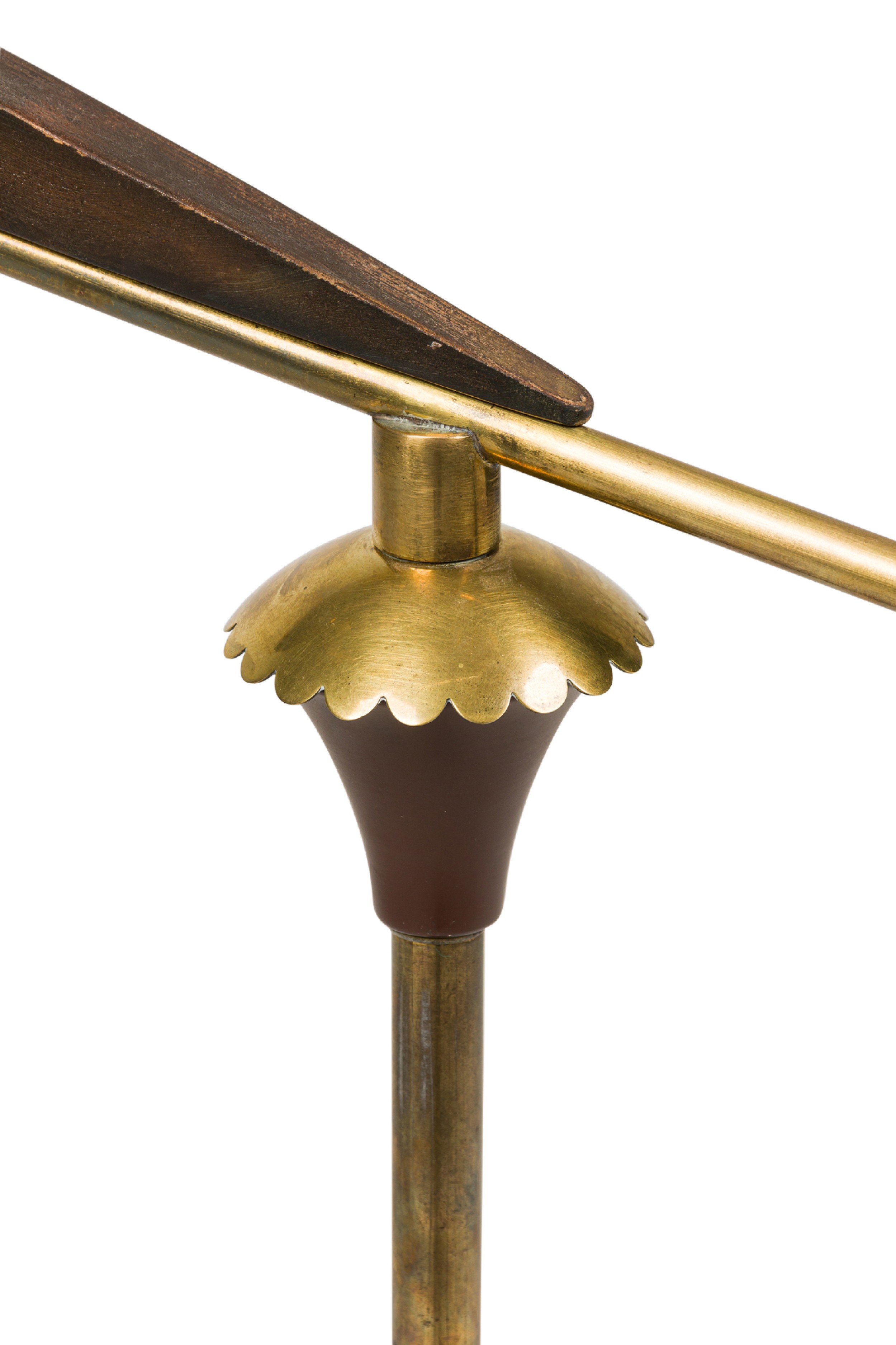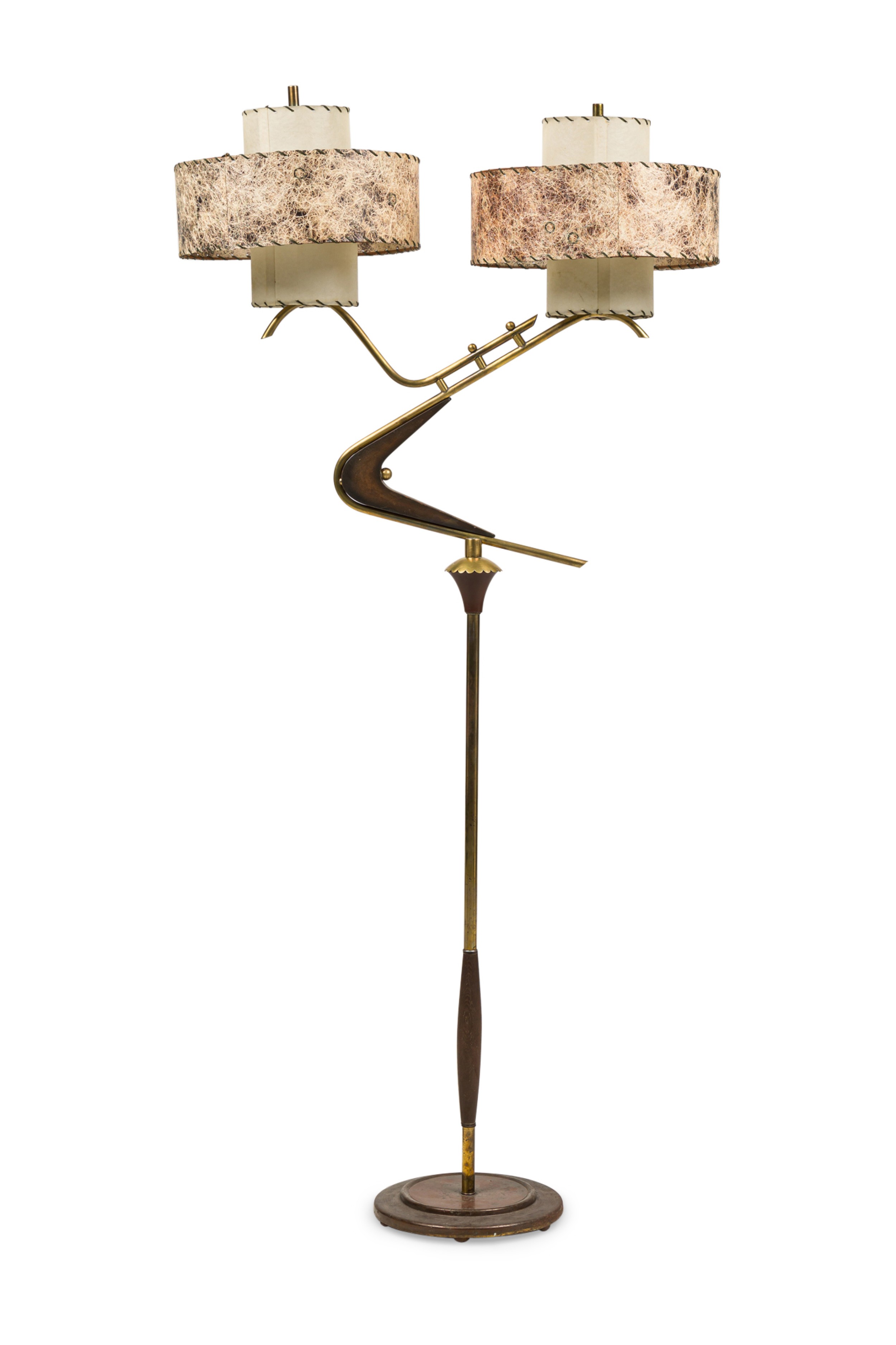 American Mid-Century Teak and Brass 'Boomerang' Floor Lamp