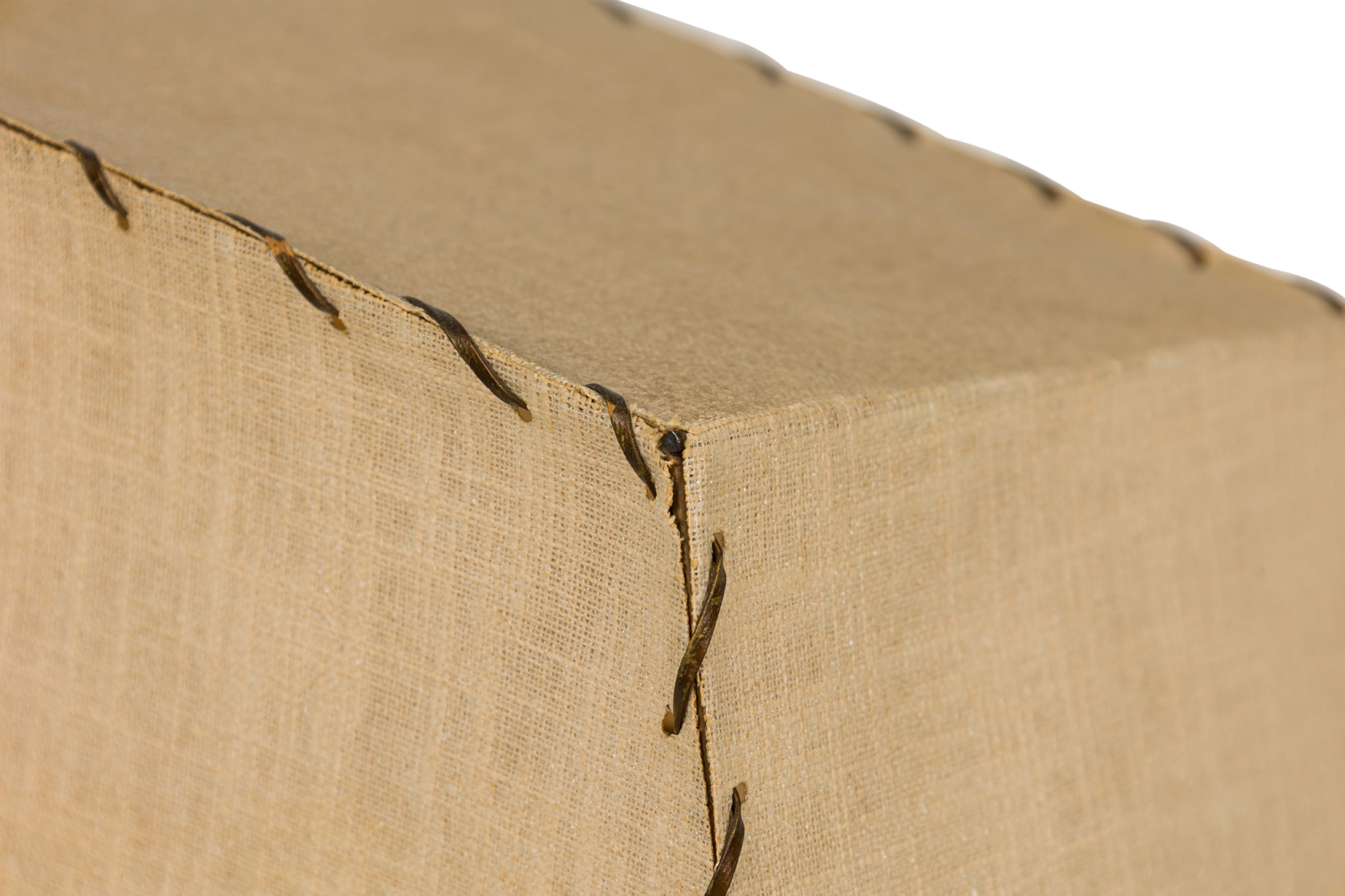 American Mid-Century walnut and brass twin fixture table lamp with handcrafted shades made of vellum and other natural fibers.