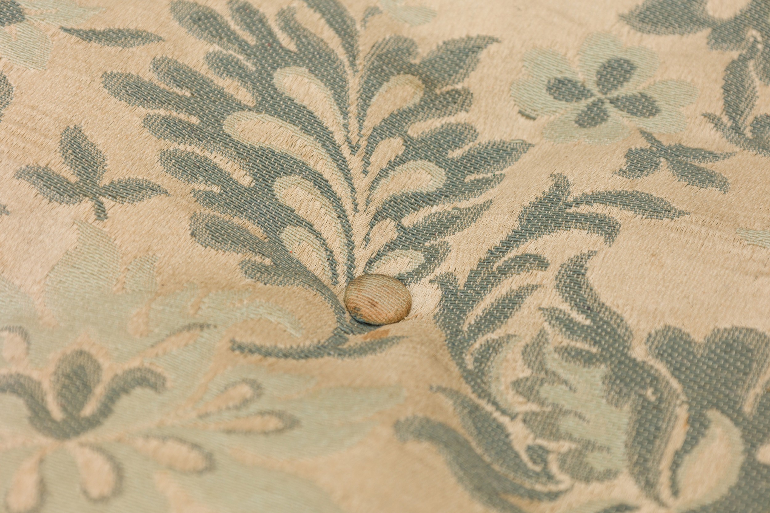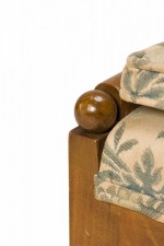 Style: Mid-Century Materials & Techniques: Fabric, walnut, wood Category: Seating Good; Wear consistent with age and use