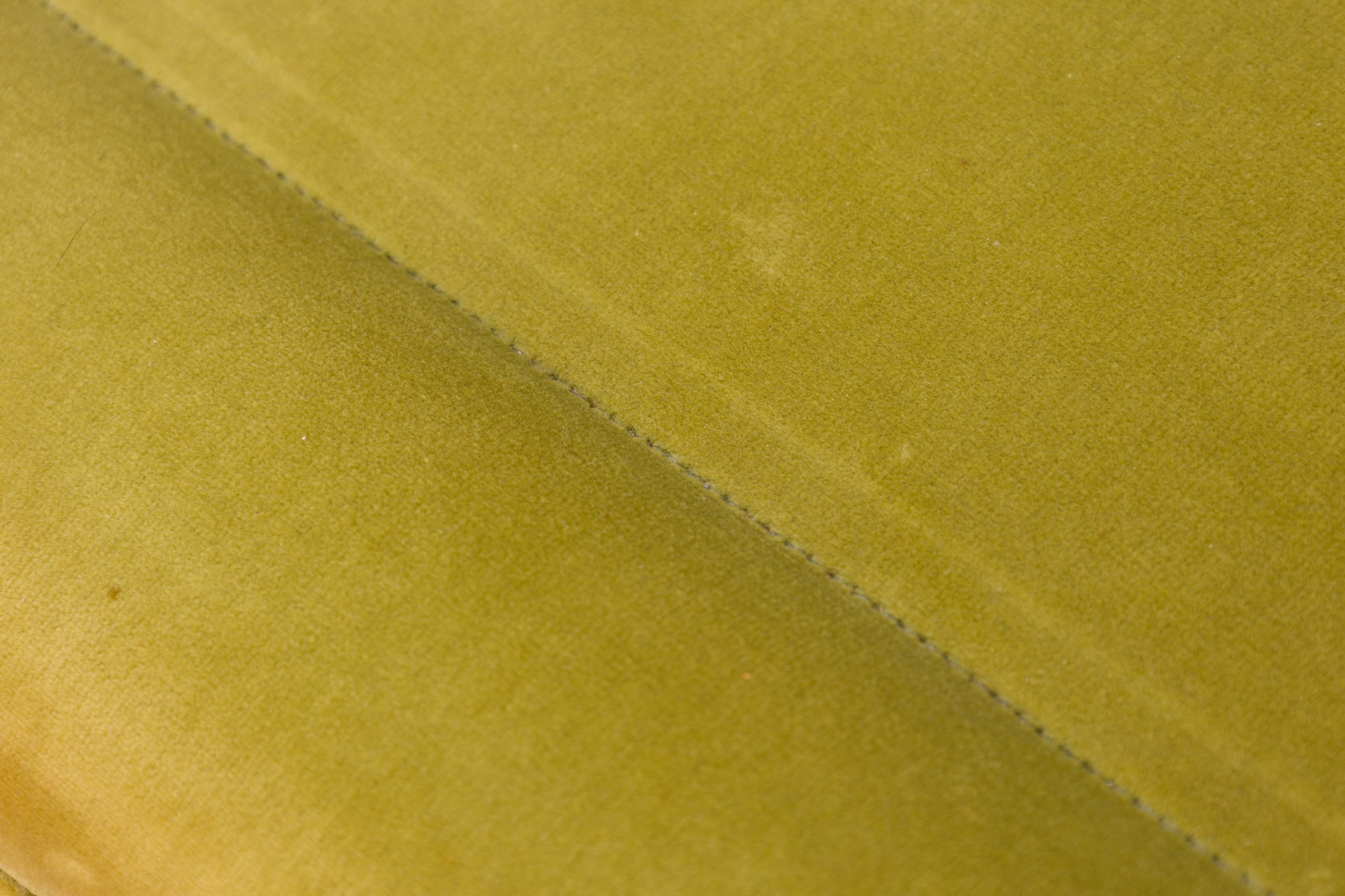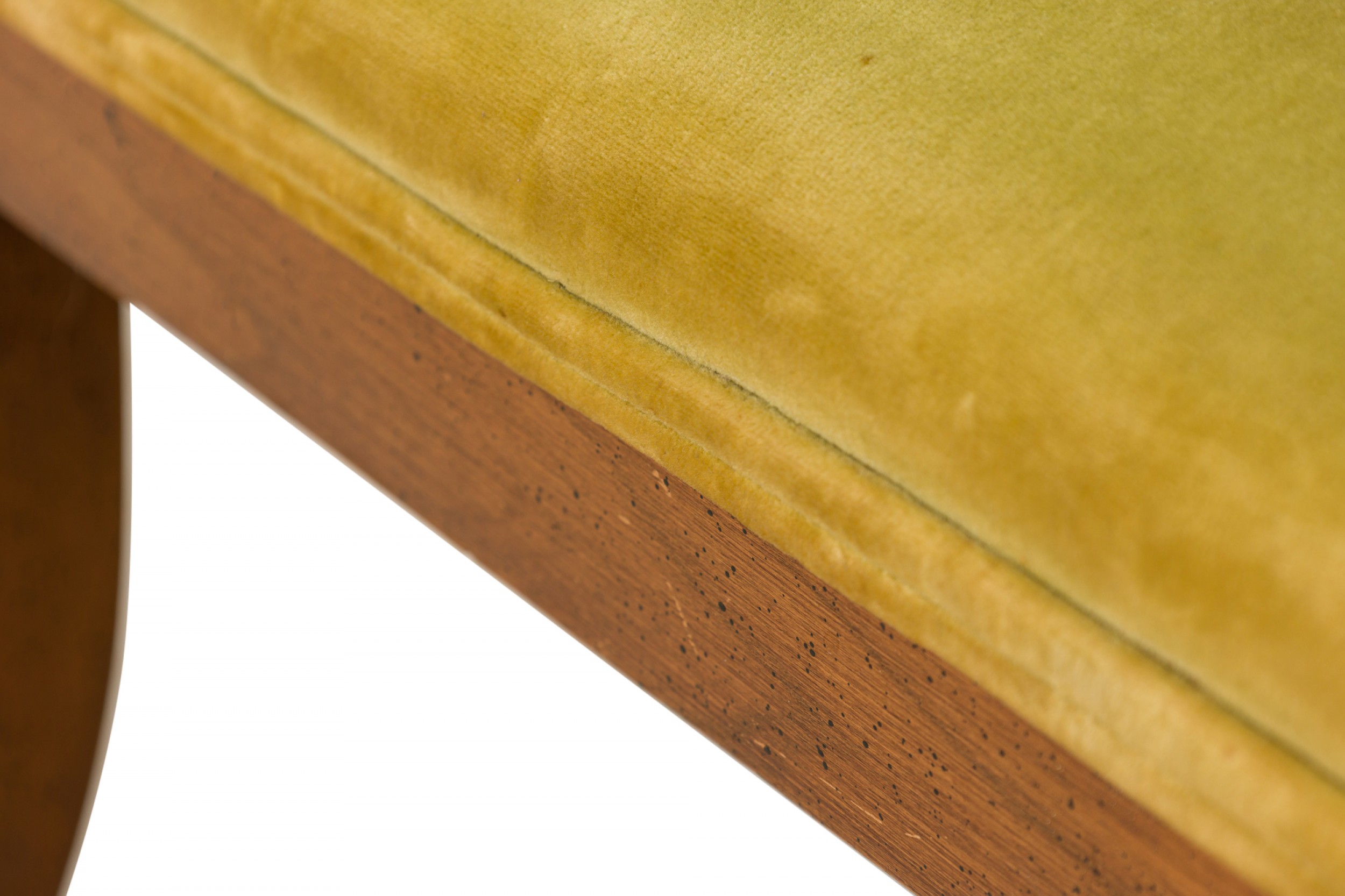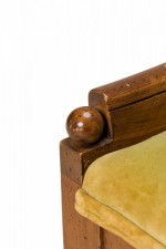 Style: Mid-Century Materials & Techniques: Fabric, walnut, wood Category: Seating Good; Wear consistent with age and use