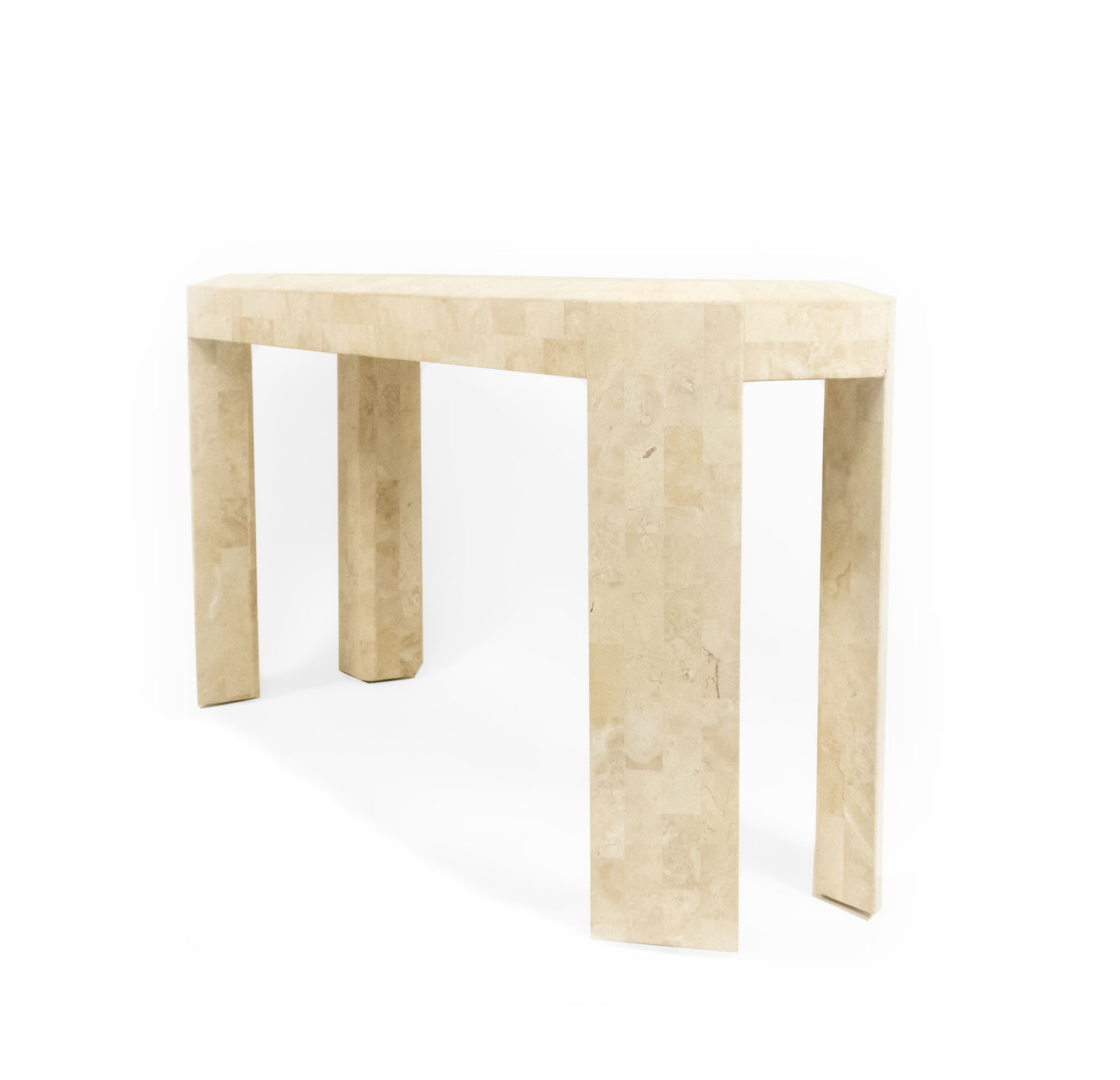 American Mid-Century Beige Tessellated Hardstone Console Table