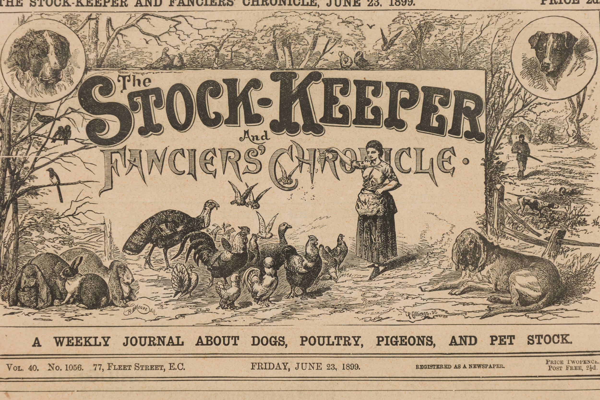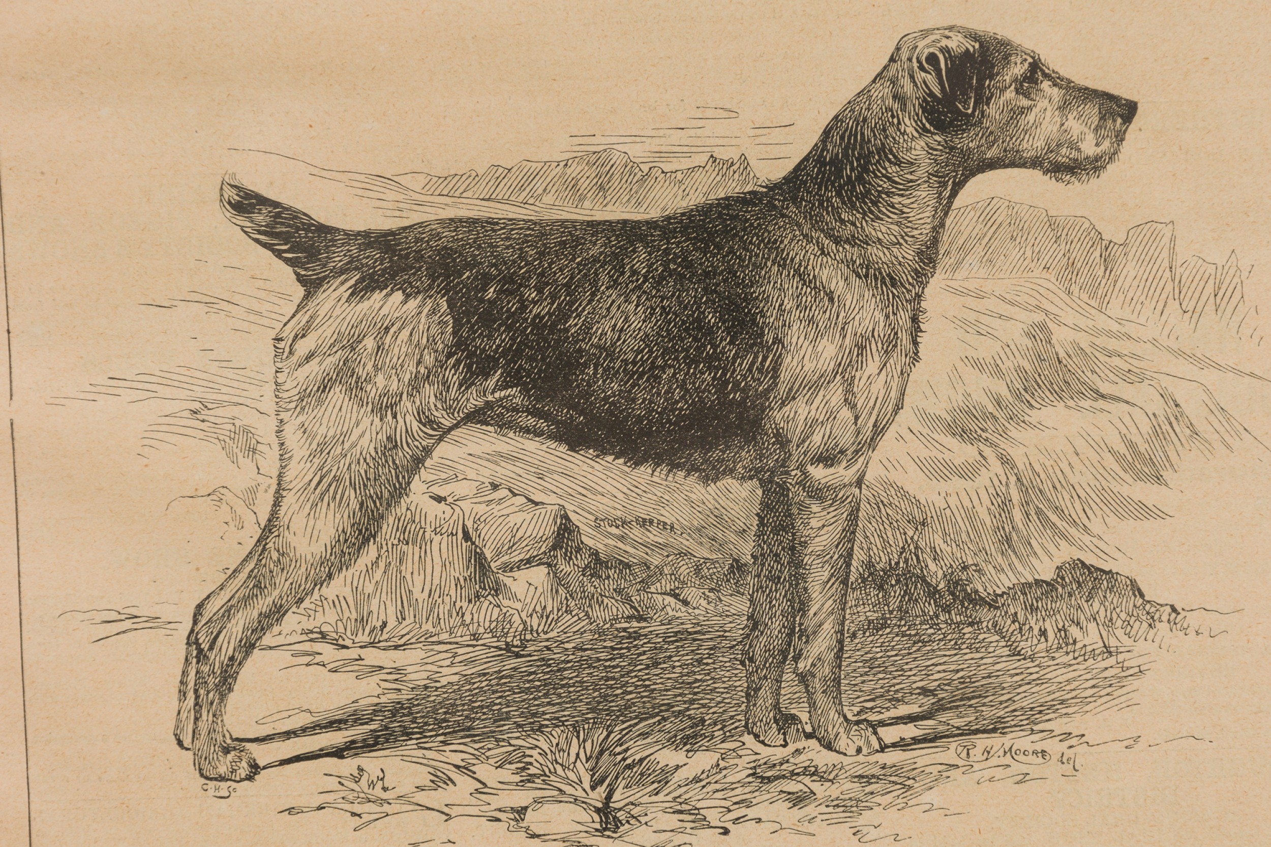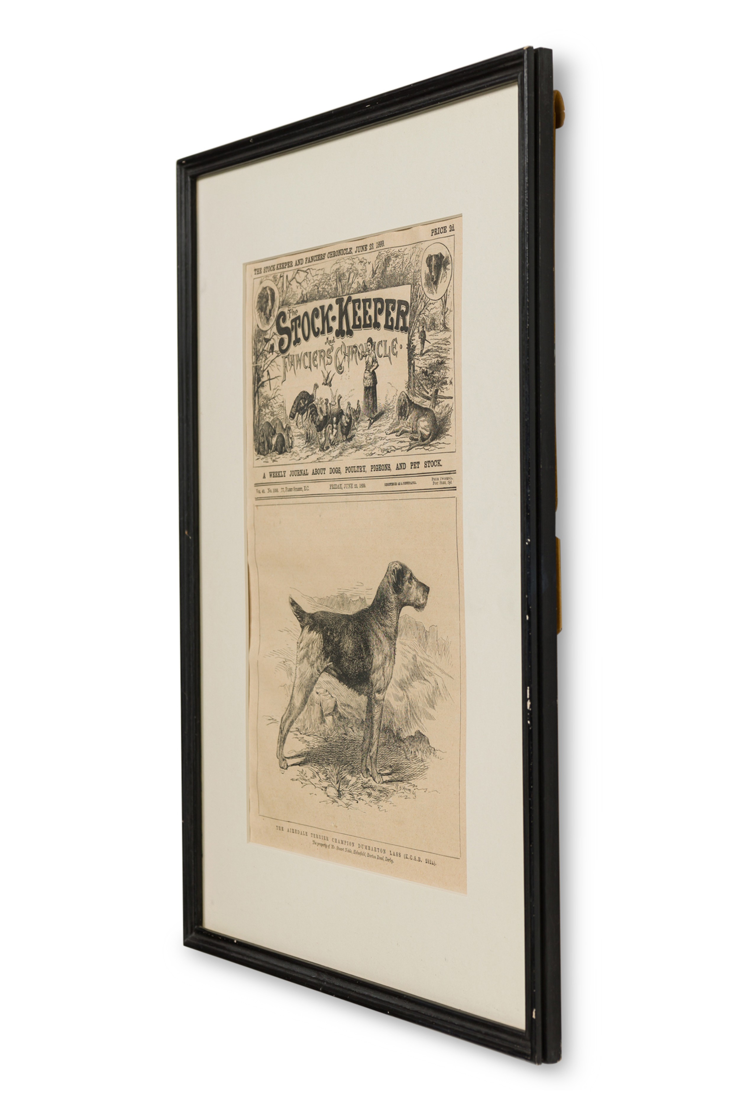 American Victorian print of an Airdale terrier in a black wooden frame.
