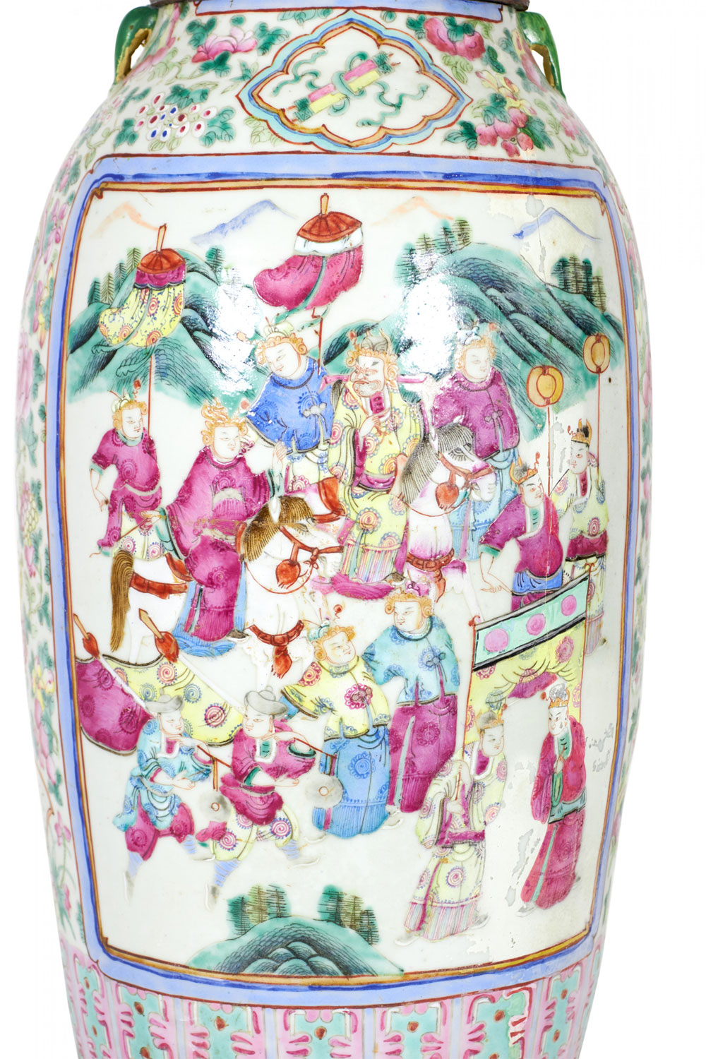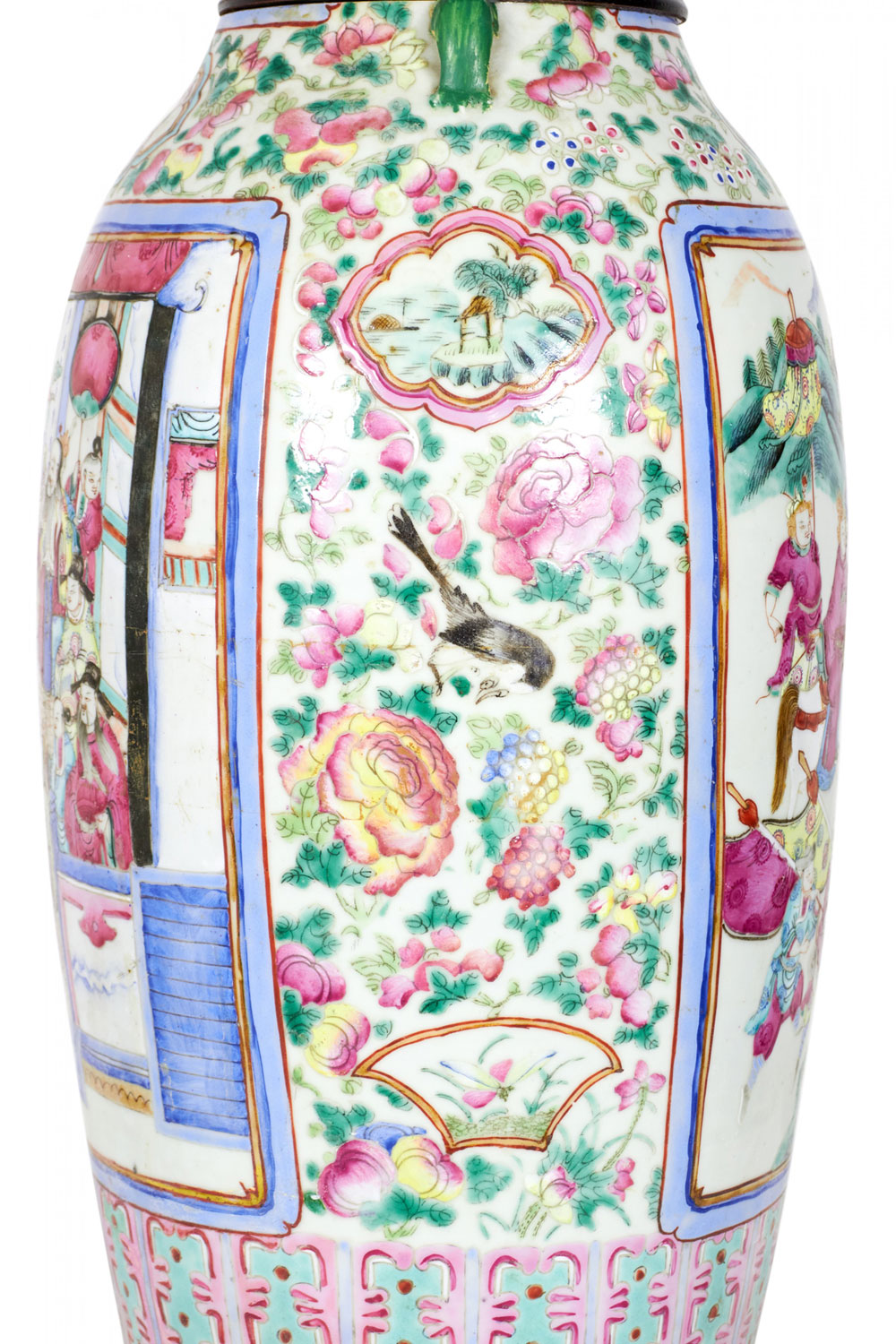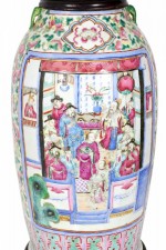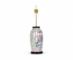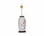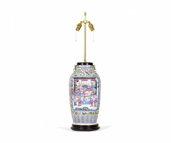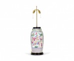 Antique Chinese Famille Rose Multi-Colored Porcelain Vase Table Lamp