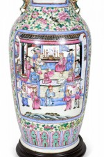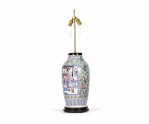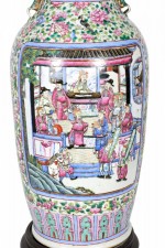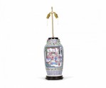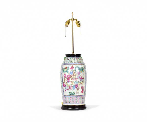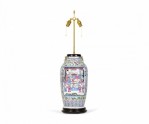 Antique Chinese Famille Rose Multi-Colored Porcelain Vase Table Lamp