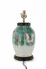 Style: Asian Materials & Techniques: Brass, metal, porcelain, wood Category: Lighting Condition: Ships without a shade.