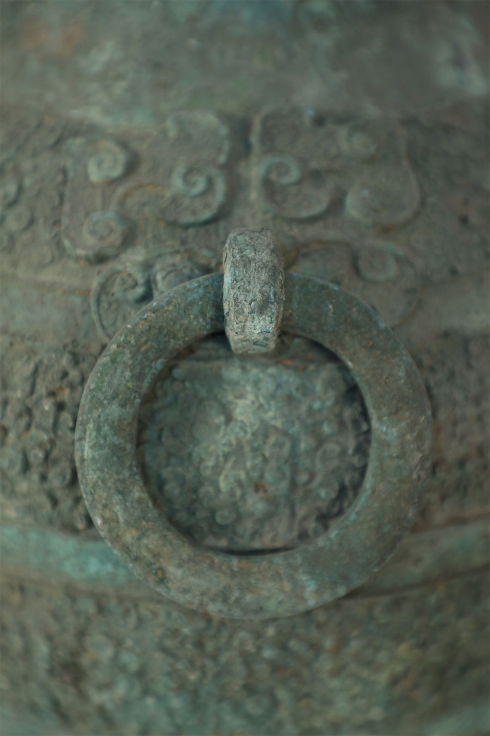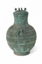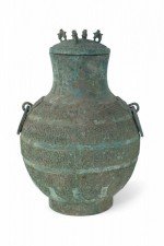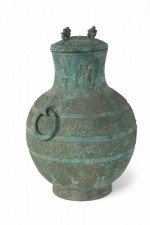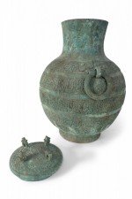 Antique Chinese Han Dynasty-Style Lidded Bronze Ritual Wine Vessel