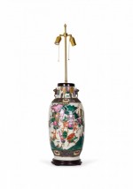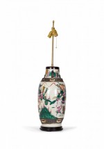 Antique Chinese Multi-Colored Famille Rose Procession Scene Design Porcelain Vase Table Lamp