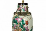 Style: Asian Materials & Techniques: Brass, metal, porcelain, wood Category: Lighting Condition: Ships without shade.