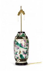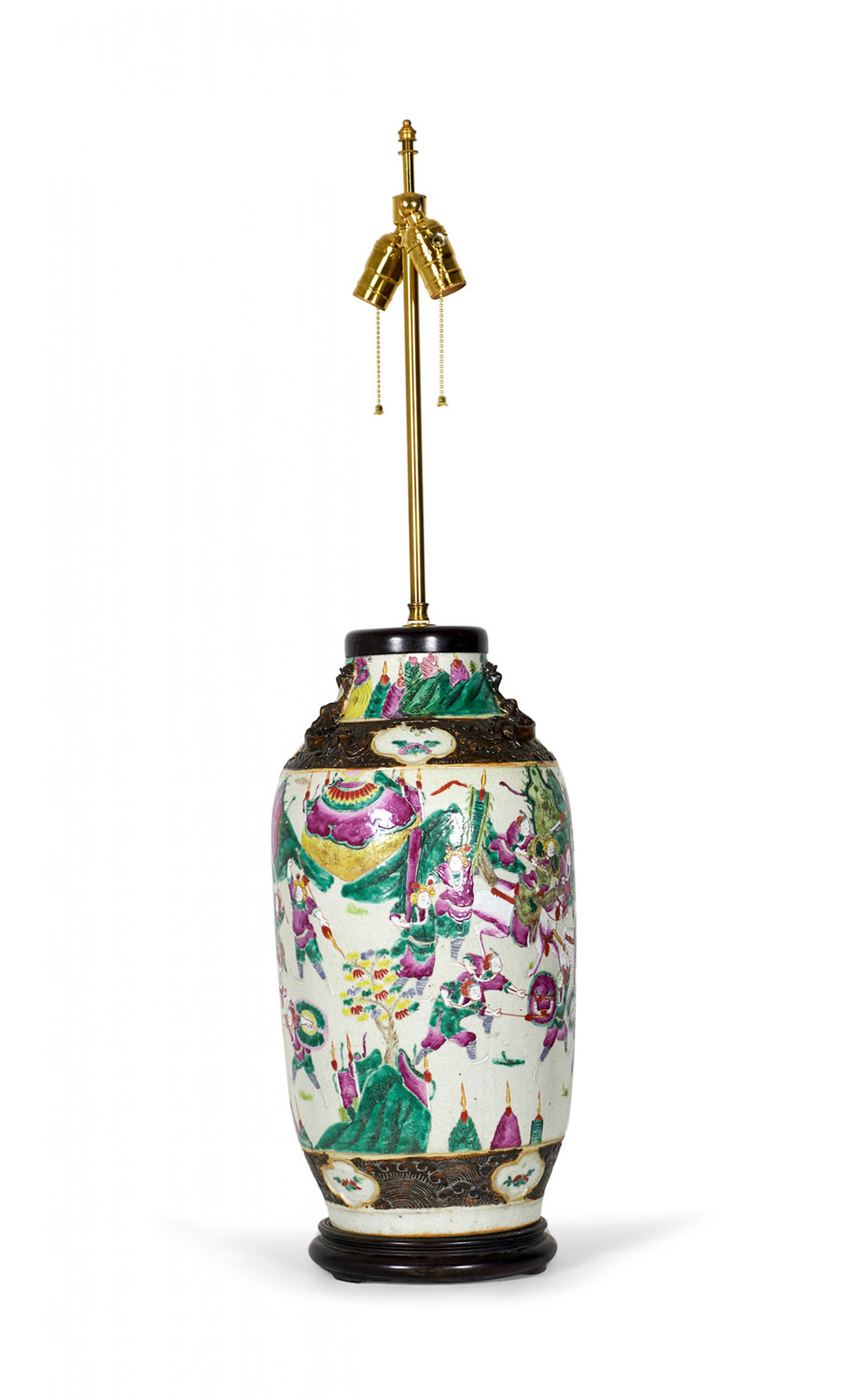 Style: Asian Materials & Techniques: Brass, metal, porcelain, wood Category: Lighting Condition: Ships without shade.