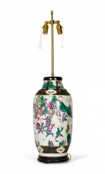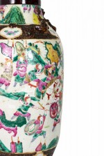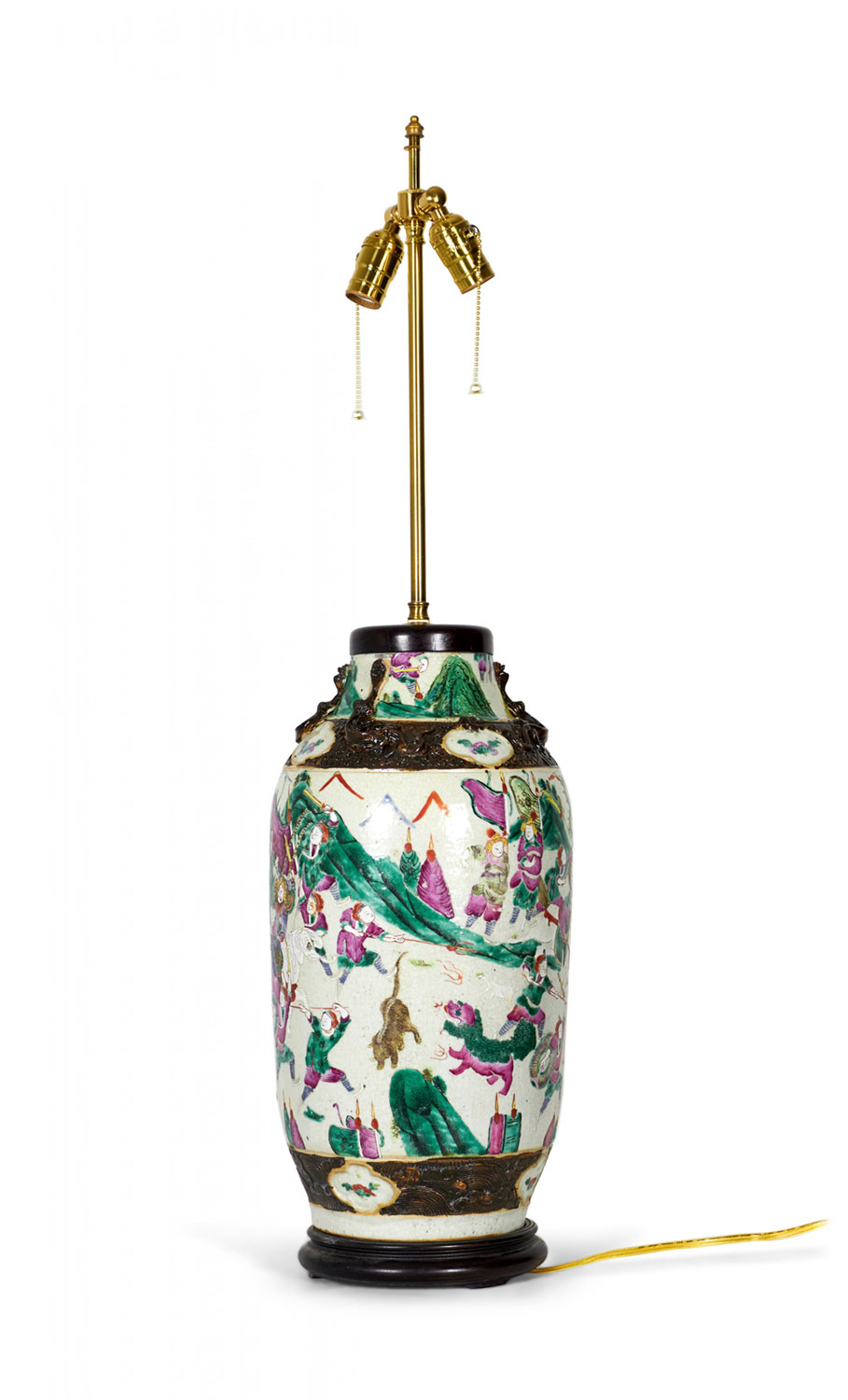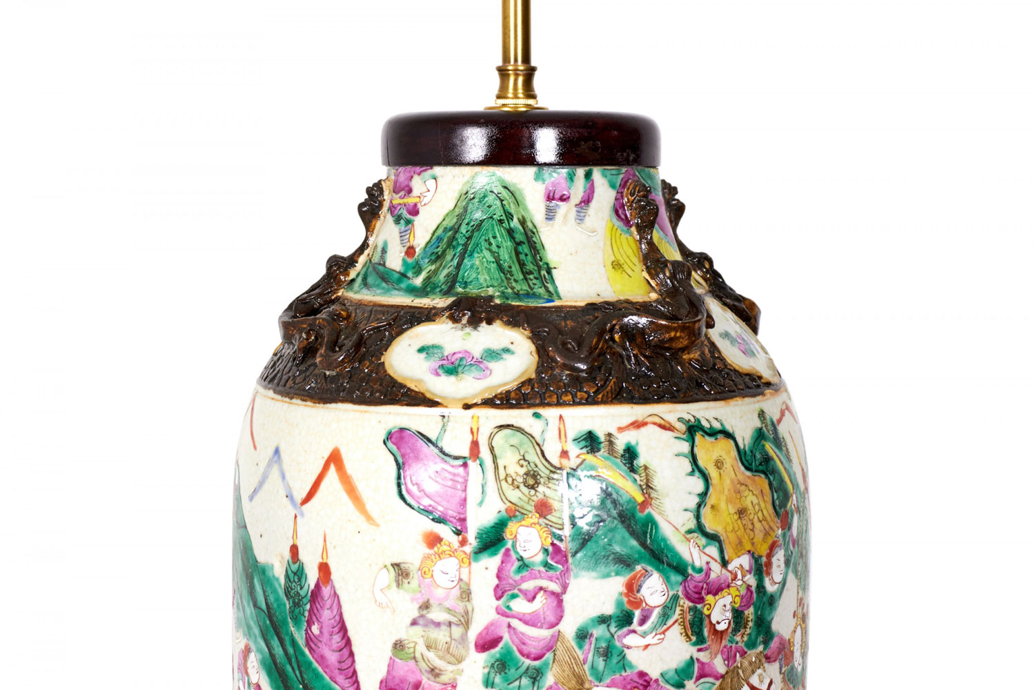 Antique Chinese Multi-Colored Famille Rose Procession Scene Design Porcelain Vase Table Lamp
