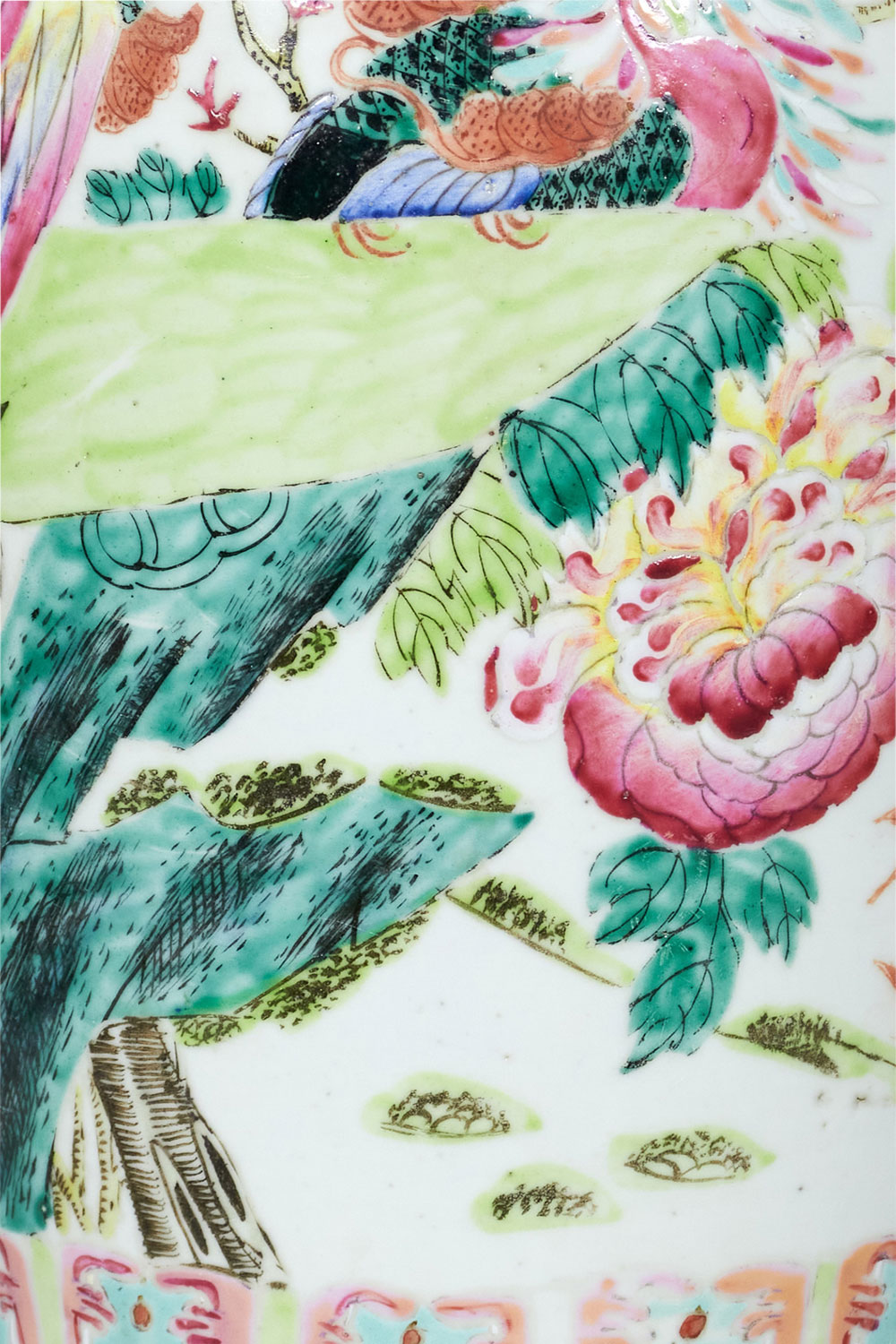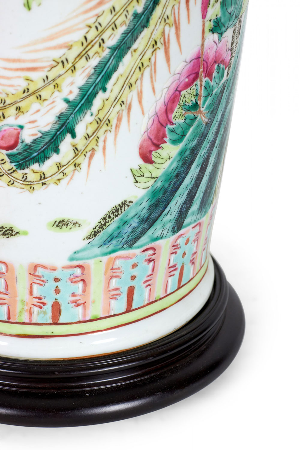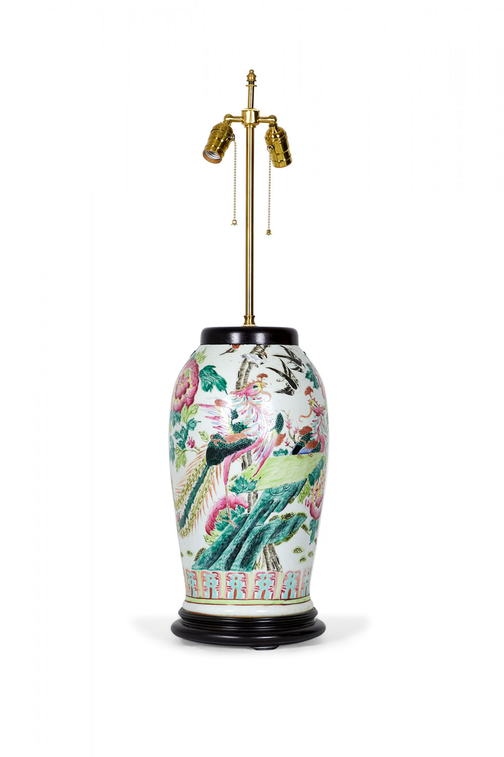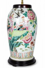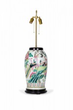 Antique Chinese Multi-Colored Famille Rose and Bird Design Porcelain Vase Table Lamp