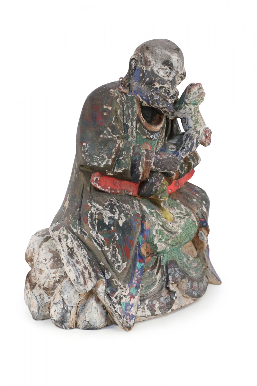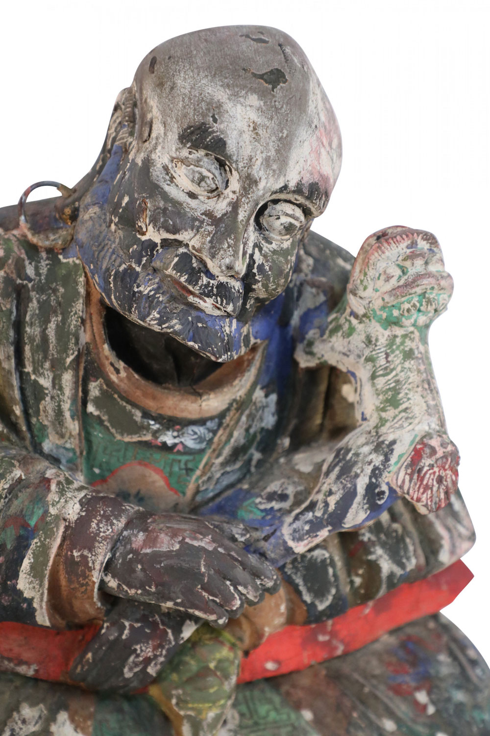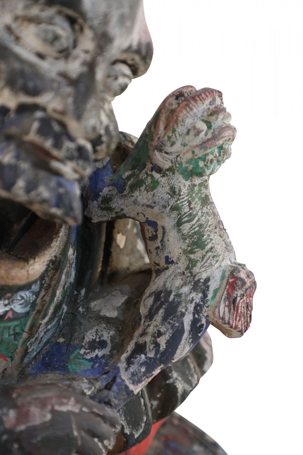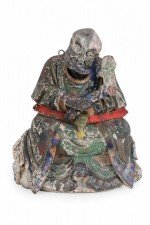Style: Asian Materials & Techniques: Clay, painted Category: Cleared Sculpture Condition: Wear to paint consistent with age.