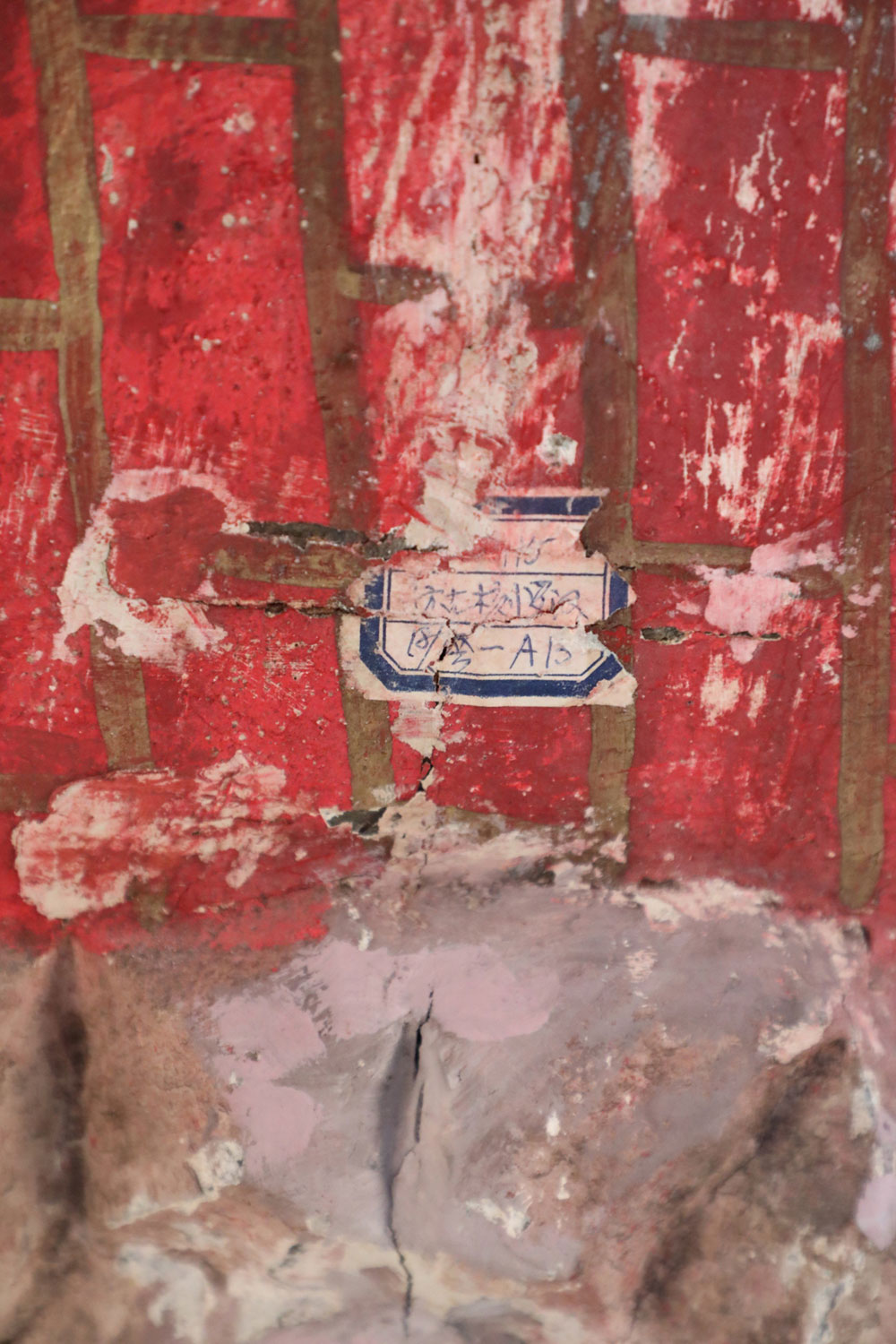 Antique Chinese Painted Clay Buddha Statue with Red Robes