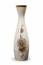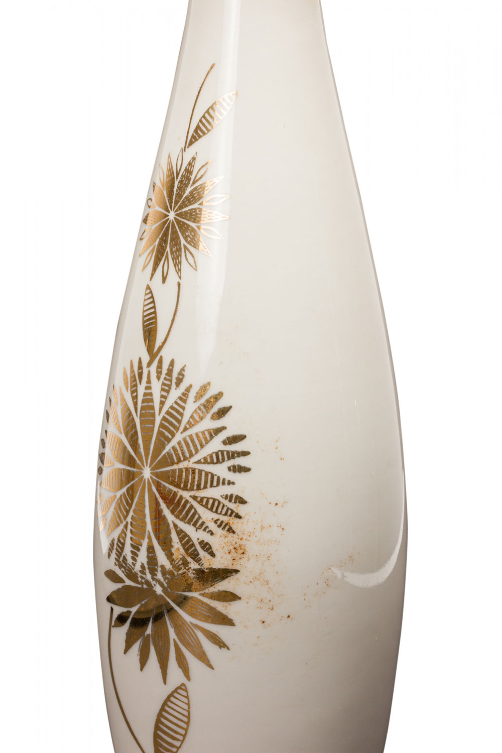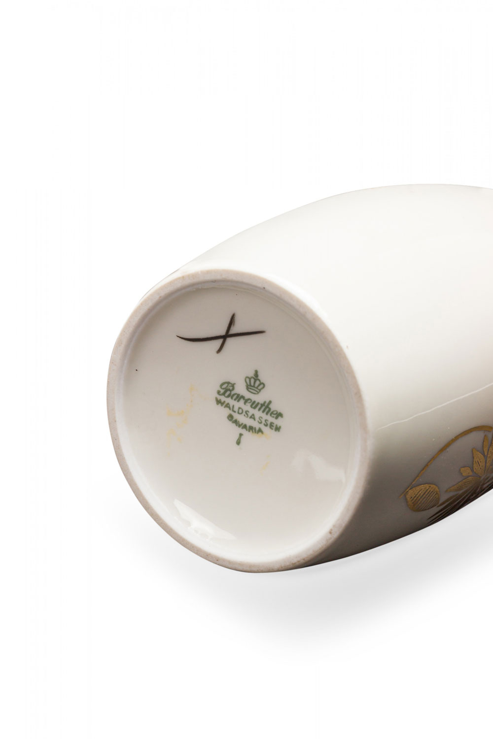 Bareuther Waldsassen Bavarian German Mid-Century Gilt Floral Design White Porcelain Vase