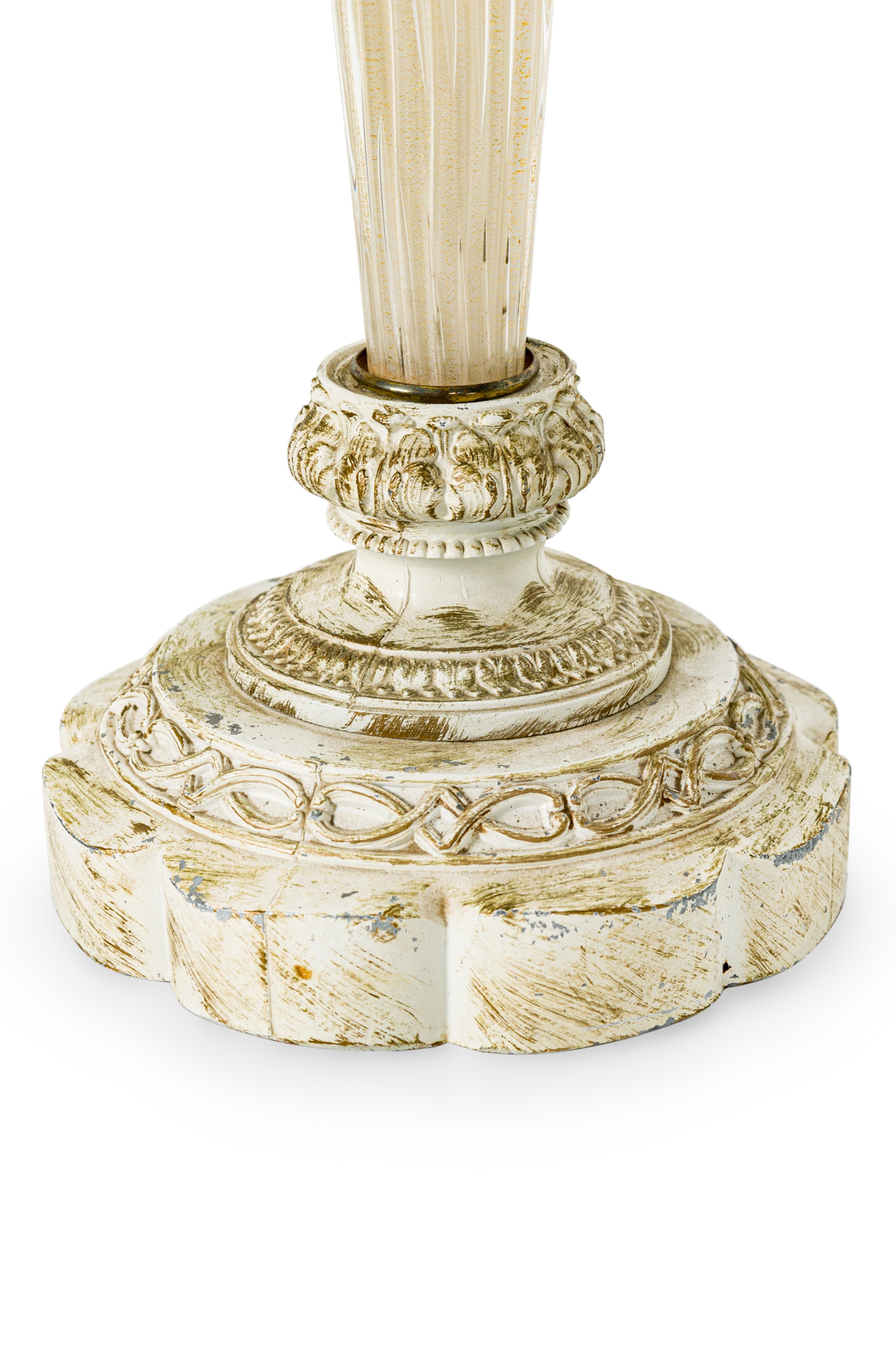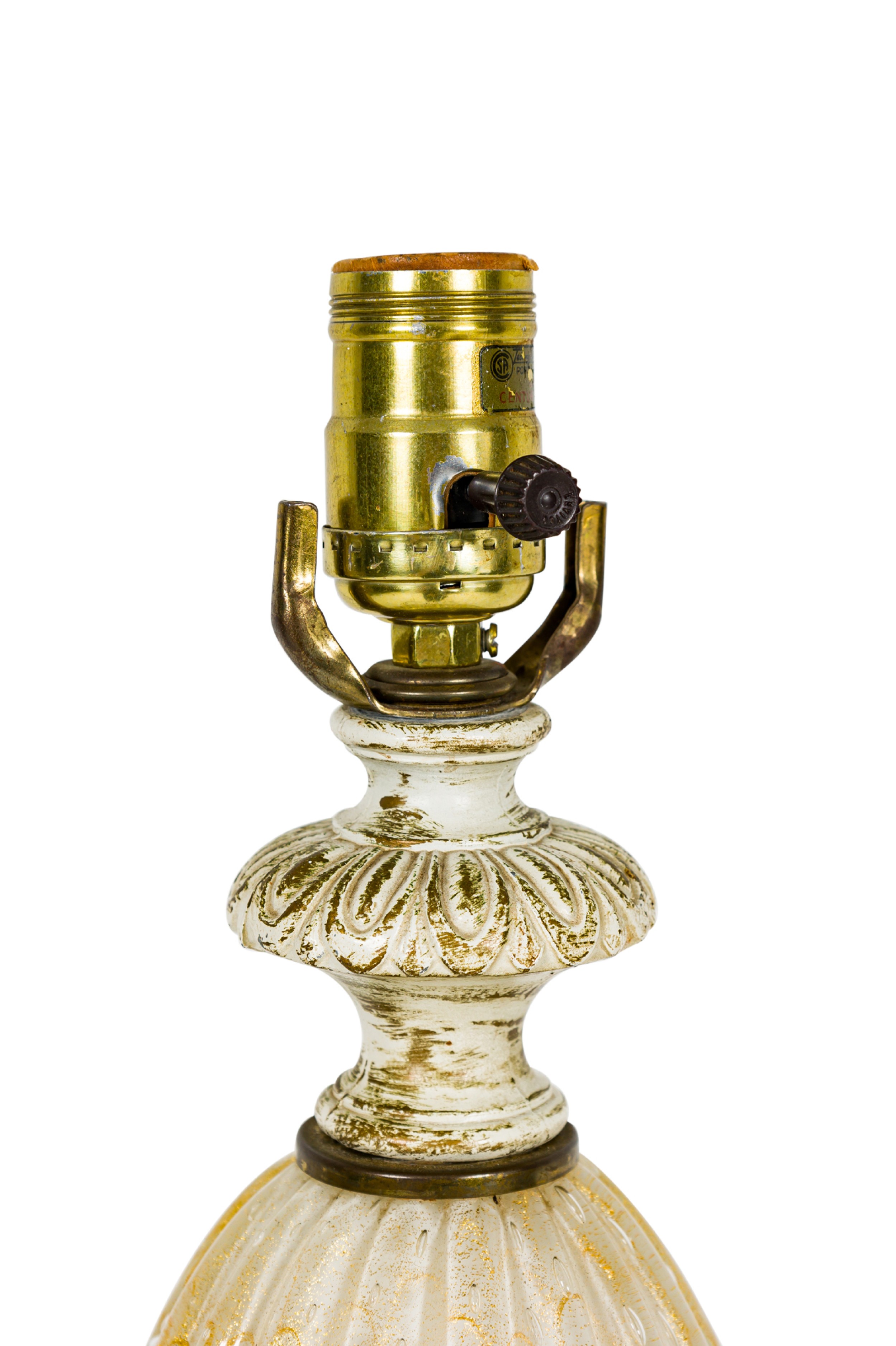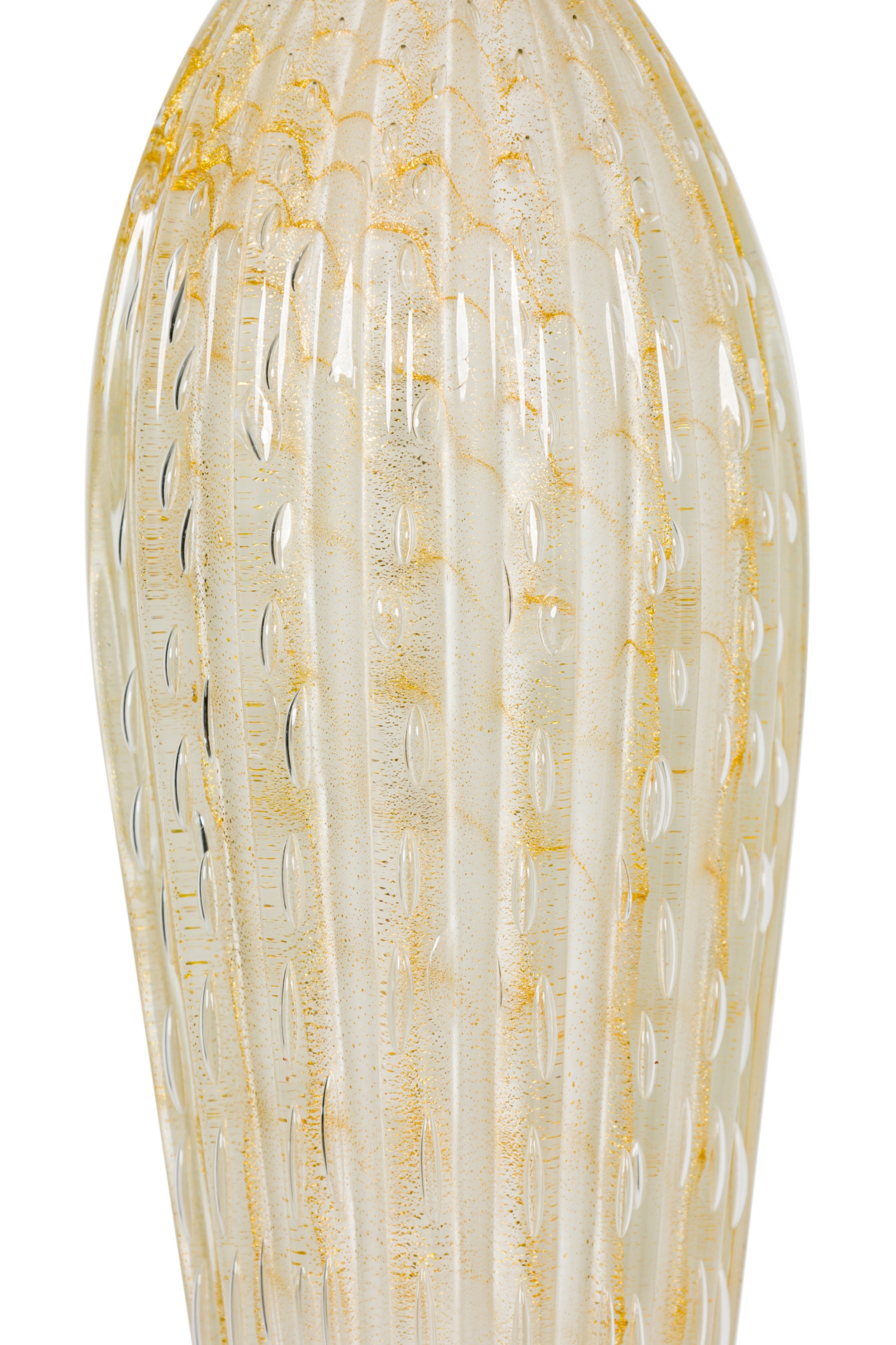 Italian Mid-Century Murano glass table lamp featuring gold fleck and bubble throughout hand made glass atop a round painted base (BAROVIER & TOSO)