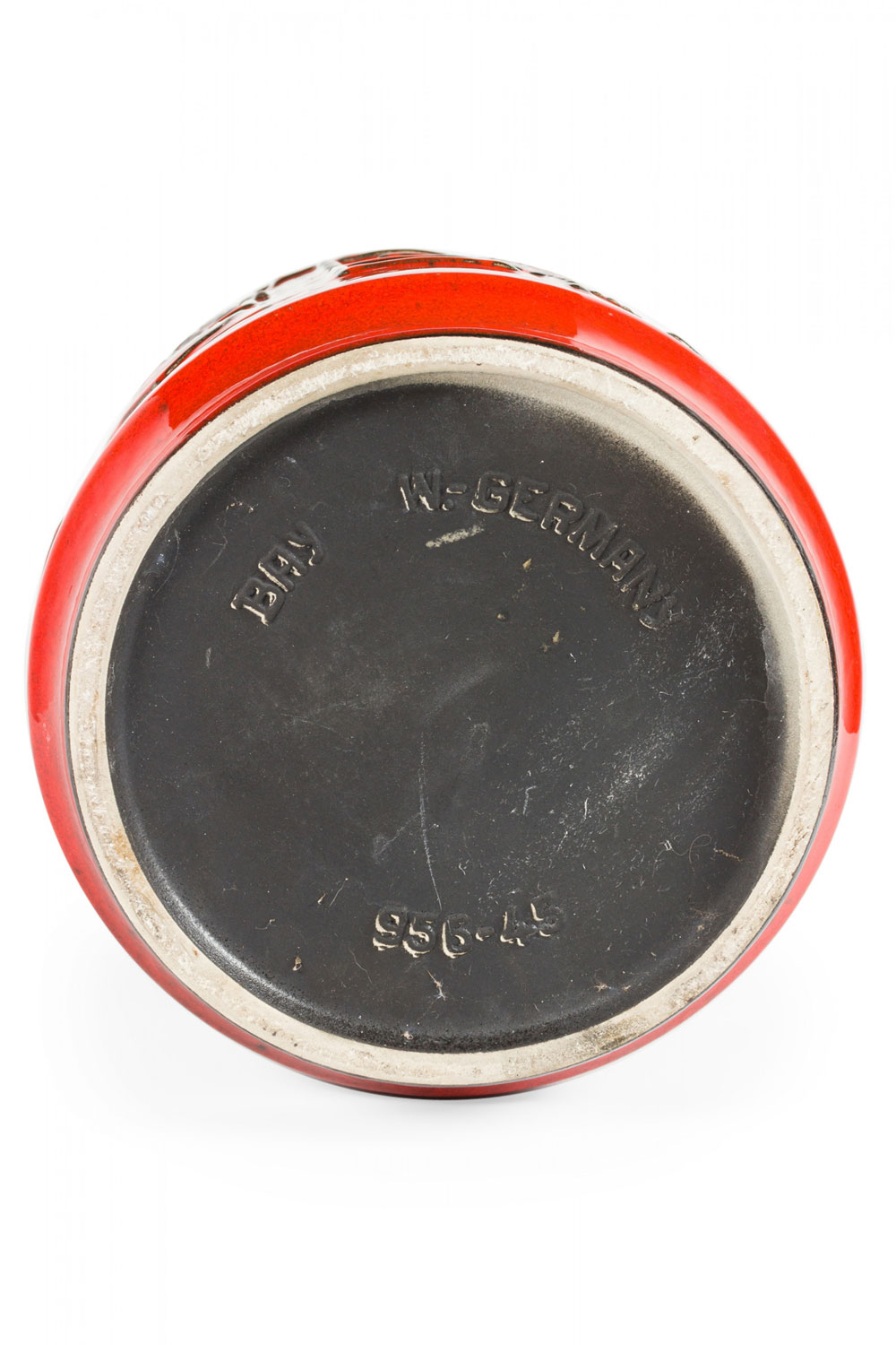 Bay Keramik West German Mid-Century Deep Red and Black Raised Geometric Patterned Ceramic Vase
