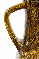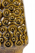 Bay Keramik West German Mid-Century Raised Abstract Circle Design Handled Black and Gold Glazed Vase
