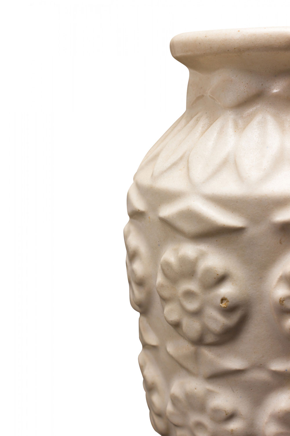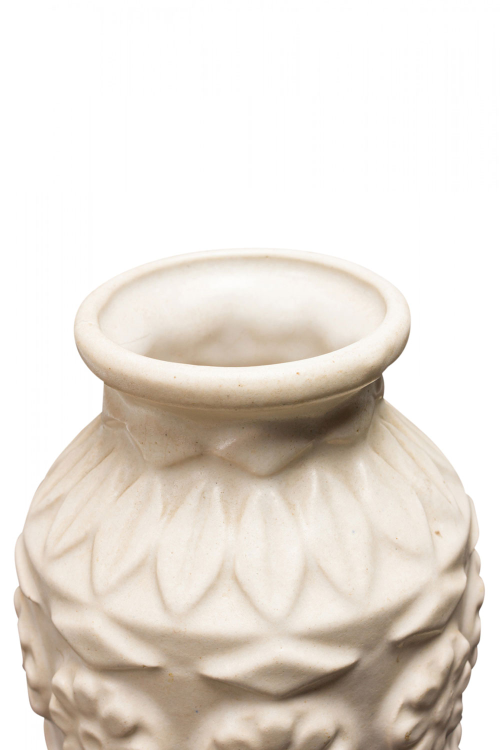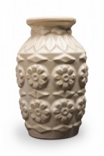Bay Keramik West German Mid-Century Raised Flower and Leaf Design White Ceramic Vase