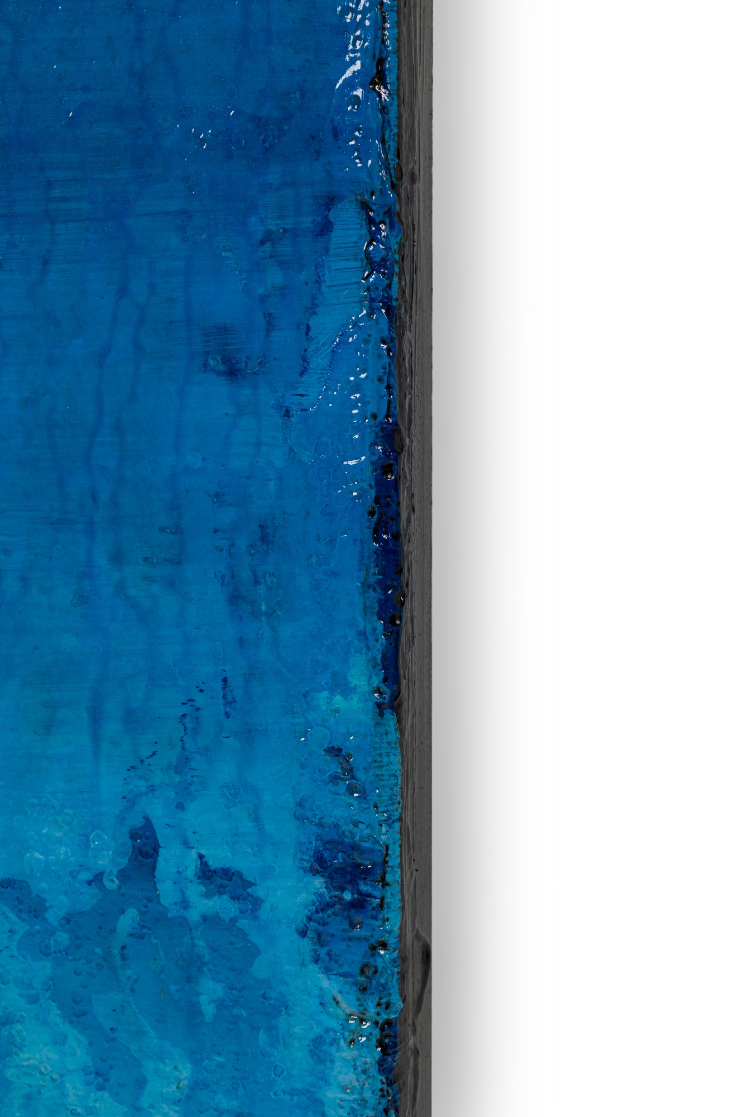 American Contemporary mixed media artwork featuring a black painted line dividing horizontally between an upper blue gradient and lower grey portion (BRAD ROBERTSON)