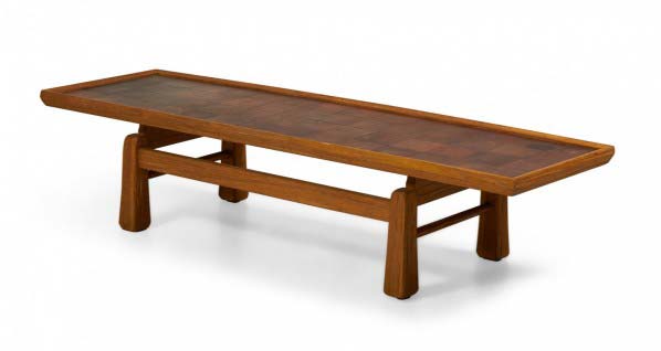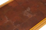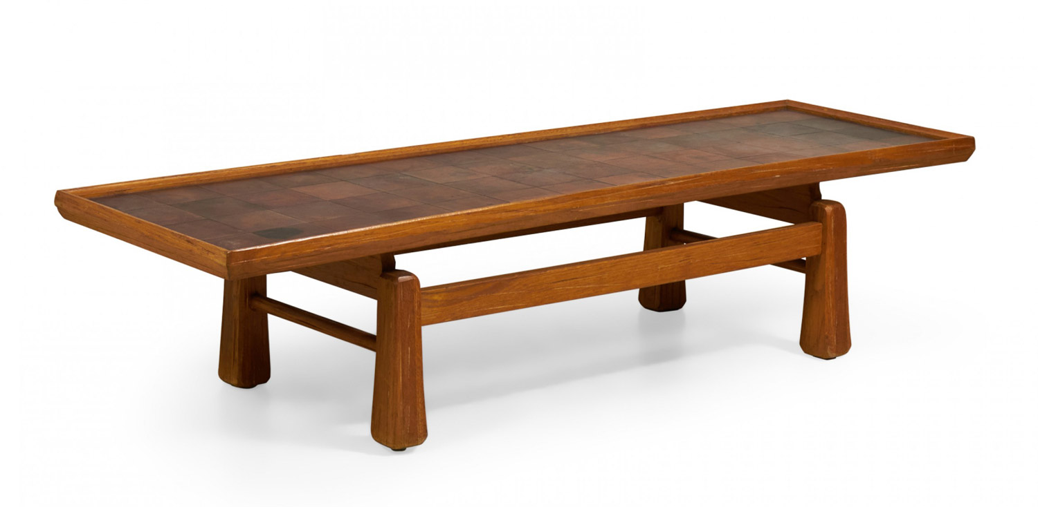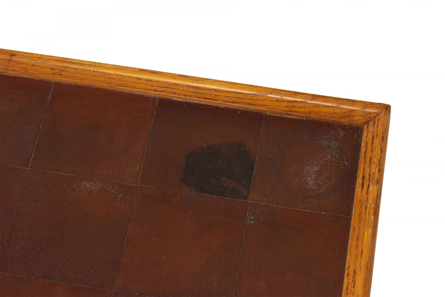 Style: Mid-Century Materials & Techniques: Leather, oak, wood Category: Tables Good; Wear consistent with age and use