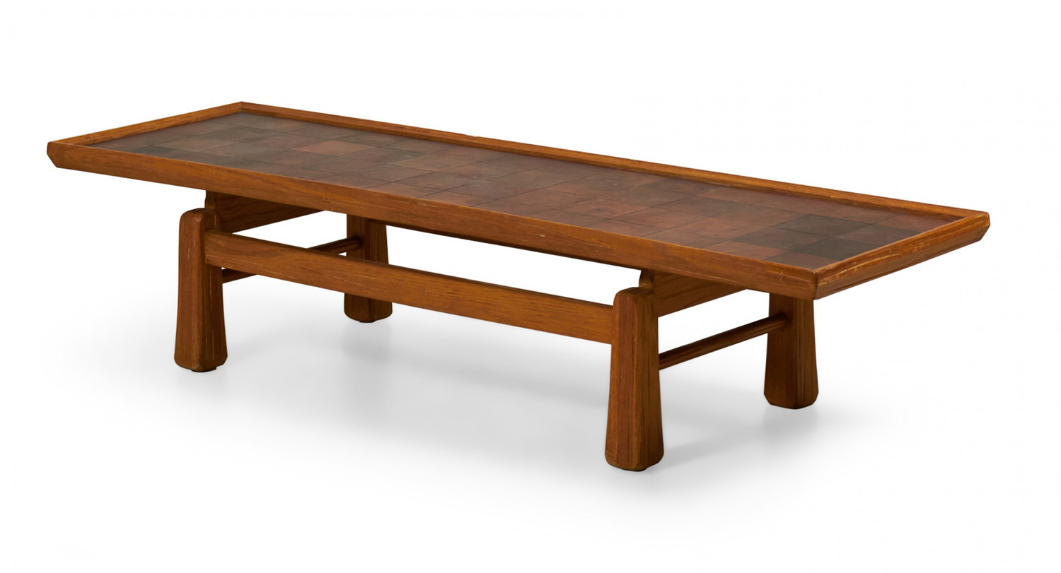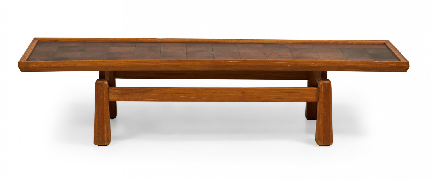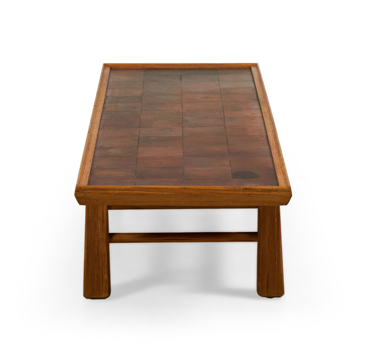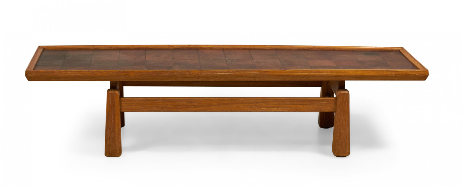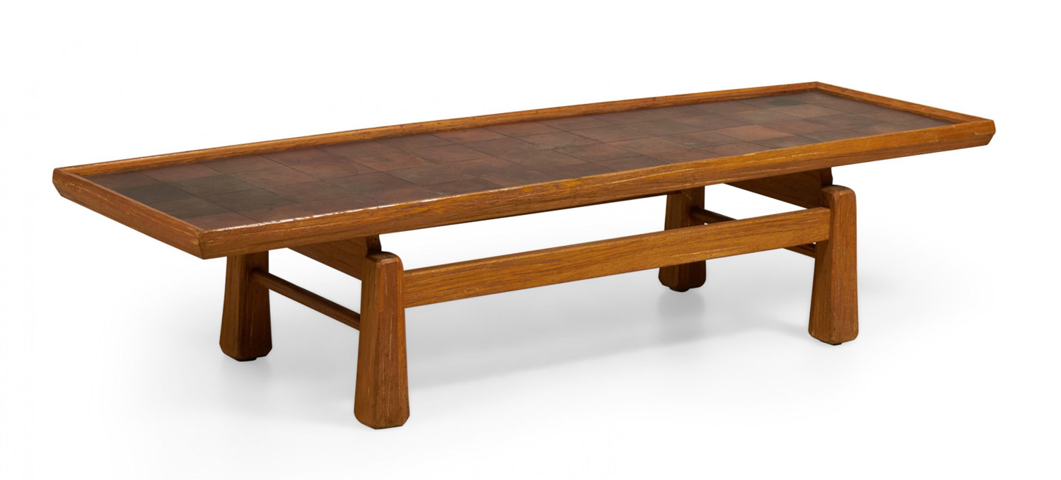 Brandt Ranch Oak American Mid-Century Rustic Oak and Leather Patchwork Coffee / Cocktail Table