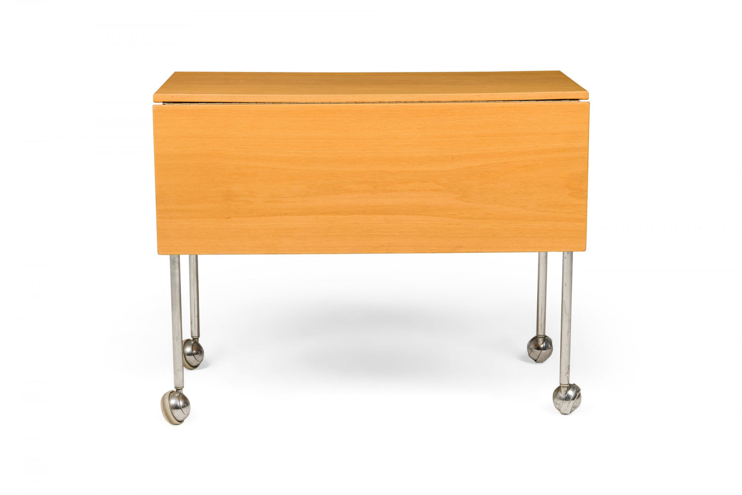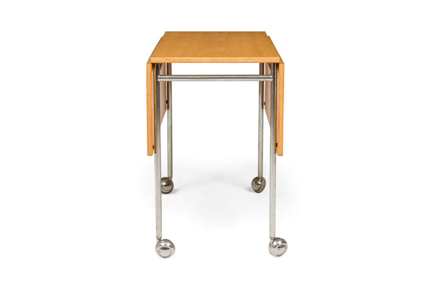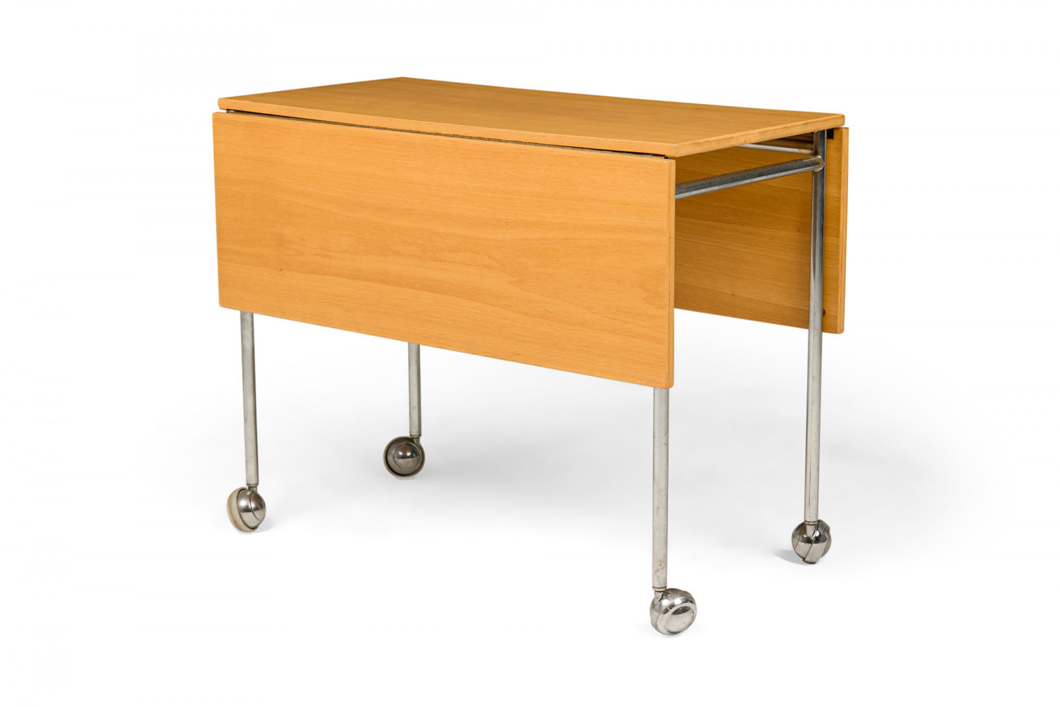 Bruno Mathsson Swedish Mid-Century Drop Leaf Wood and Steel Rolling Work Table