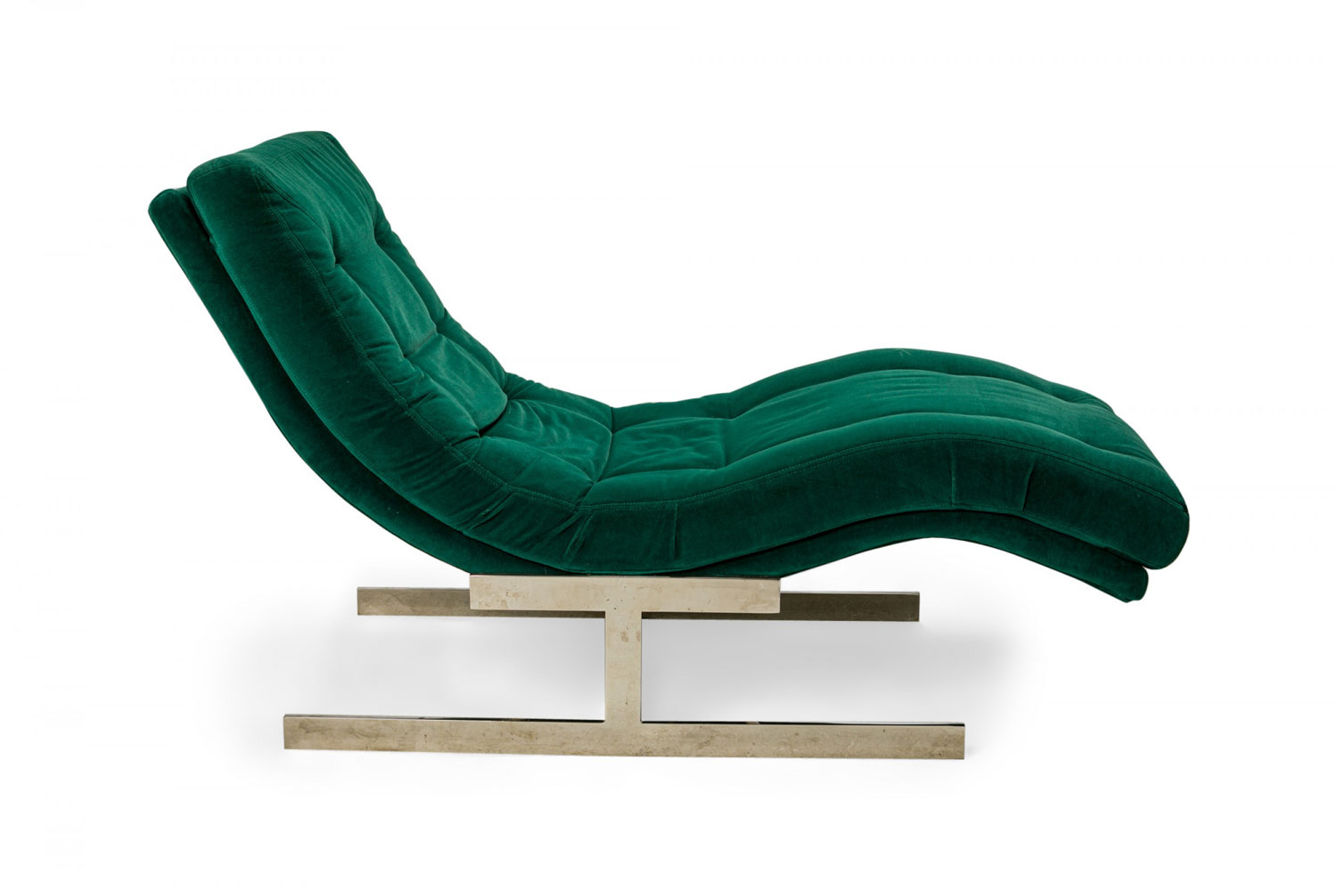 Carsons American Mid-Century Green Velour and Chrome 'Wave' Form Chaise Lounge